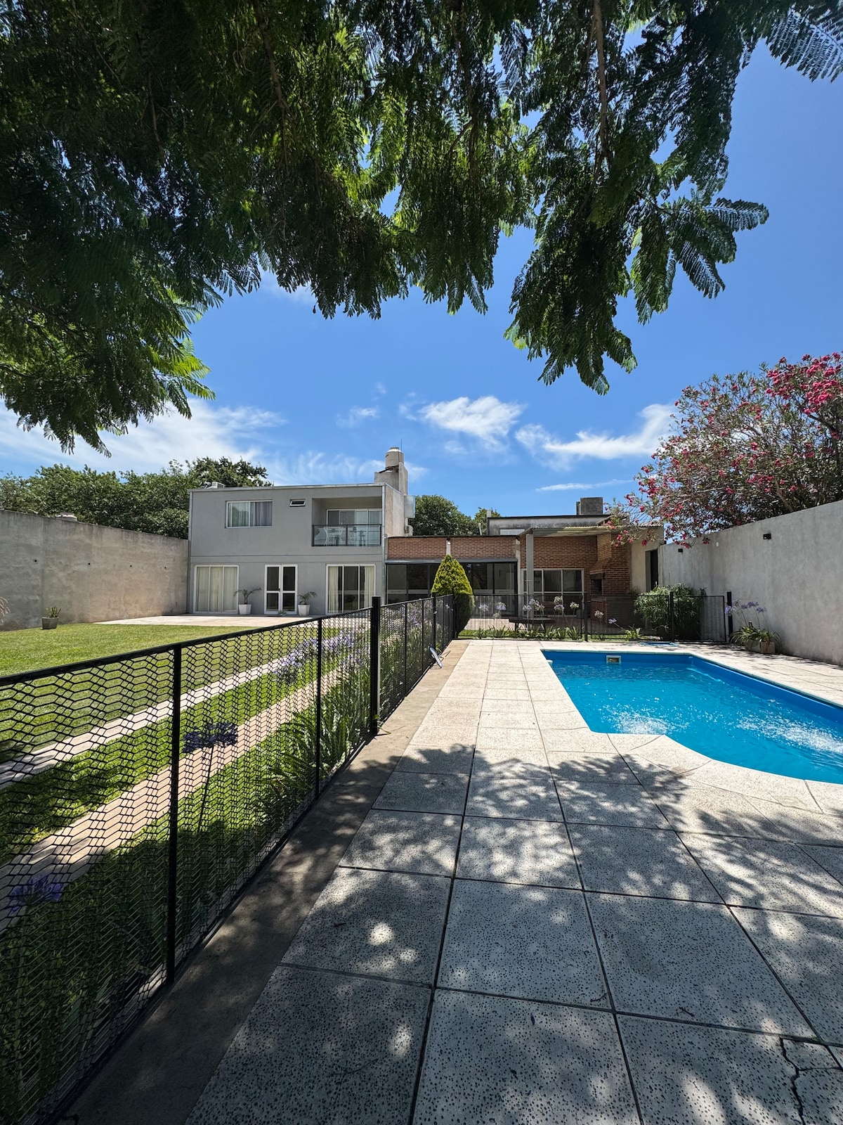 Nuestra casa se encuentra en el corazón de la ciudad de Villa Ramallo, en un Barrio llamado Amuchoca que se caracteriza por su tranquilidad, estamos a 5 kms del Río Paraná. Es la comodidad de estar cerca de todo, pero también la tranquilidad de un espacio privado. Contamos con una casa cómoda y apta para 6 personas, el mayor atractivo en temporada de verano es nuestro patio verde y su mini piscina con Hidro masajes y en invierno el living tiene una estufa a leña con fuego a la vista.