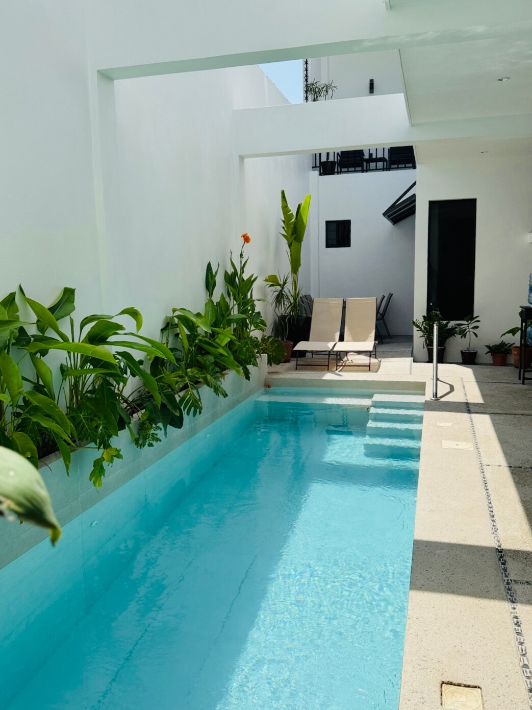 Relájate en Villa Careyes. Un departamento Boutique tropical-minimalista. Disfruta su comodidad y acabados de lujo: Muebles de madera parota, un diseño que prioriza luz y ventilación natural. Cocina completa, sala de estar, SmartTV 65", Wifi, 2 recámaras, 2 camas queen, 2 baños, AC, cortinas blackout, 2 balcones: a la piscina y a la calle. Situado en 2a. planta. En 1a. planta, comparte: piscina, área de lavado, terraza, camastros, hamaca, ventilador, baño y regadera. A 5 min de la playa a pie