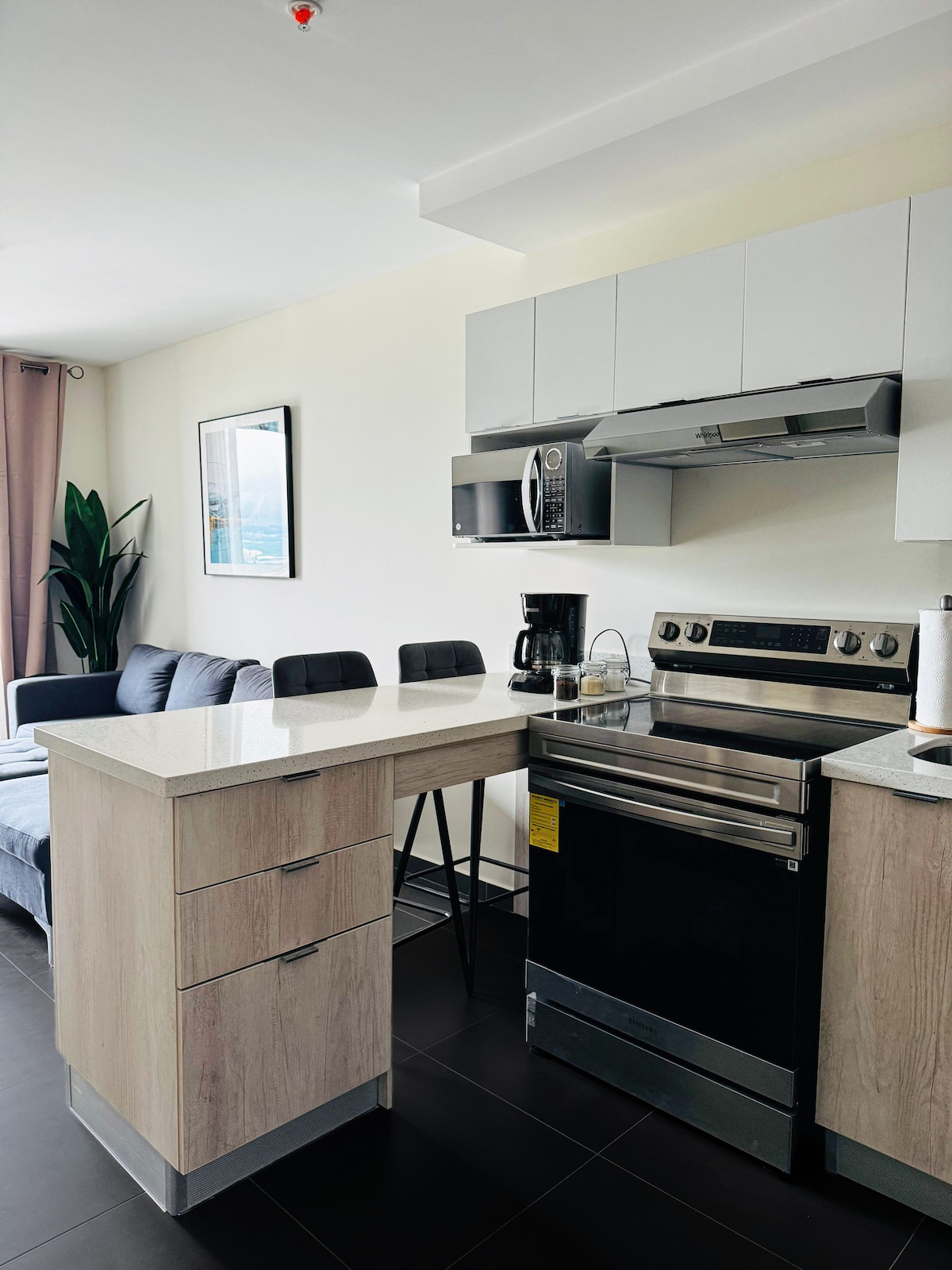 ¡Este Airbnb es impresionante! ✨ La ubicación es perfecta—justo enfrente del mejor centro comercial (Multiplaza) y con un Starbucks al lado para disfrutar de tu café favorito. ☕️ ¡Ideal para una escapada acogedora! 🏙️ También puedes caminar a los mejores restaurantes, tiendas, bares, cines y supermercados. Disfruta del Sky Lounge en nuestro apartamento, un espacio único con una vista impresionante de 360º, perfecto para recibir a familiares y amigos.