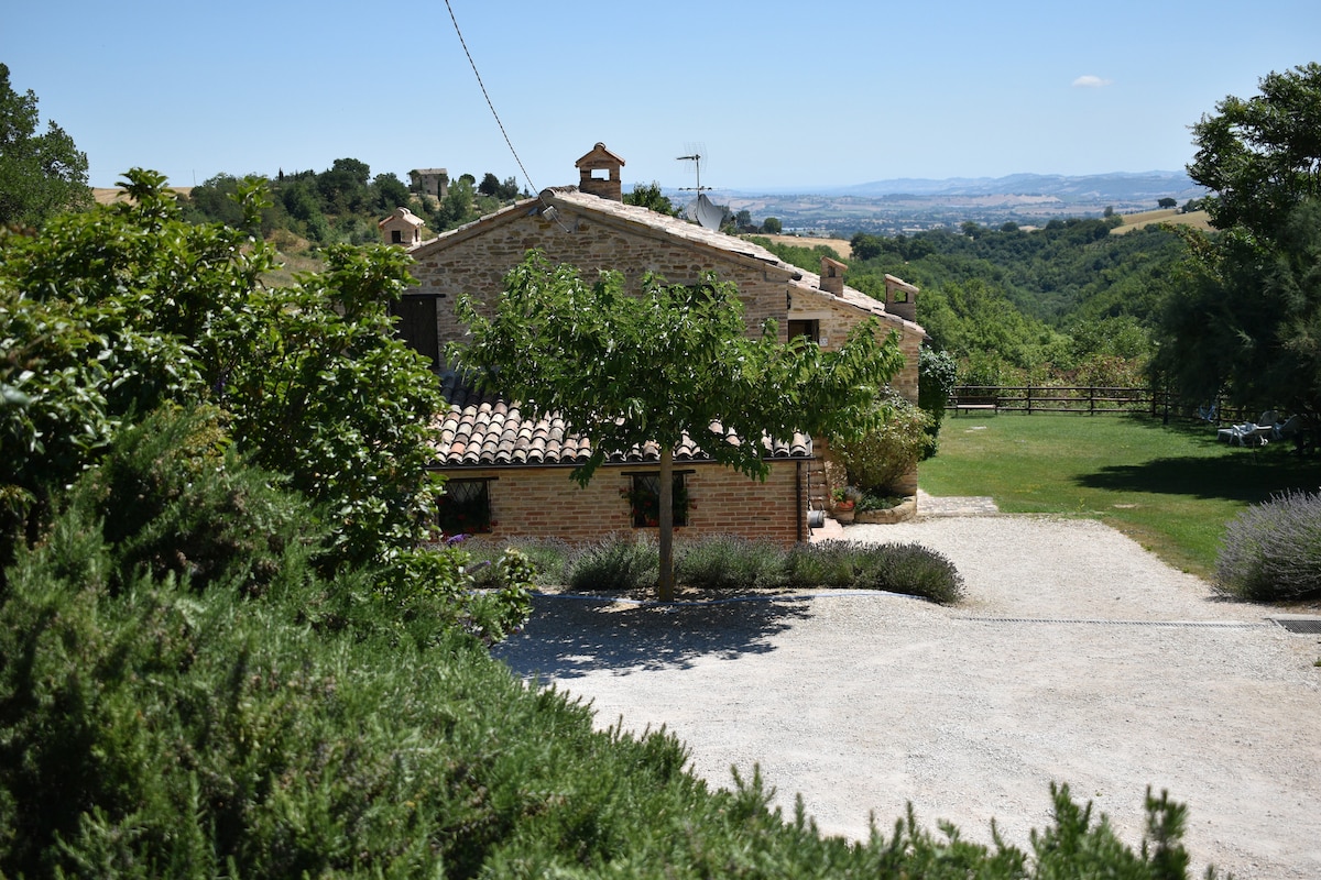 Casa de campo que ofrece momentos de tranquilidad en un ambiente sereno, producimos vino DOC y aceite de oliva virgen extra. Las Marcas están llenas de maravillas que nos regala la Madre Naturaleza: el mar, las montañas, los valles salpicados de ríos, las gargantas y los pasos naturales de los Apeninos, o construidos por la sabiduría de artistas de renombre. Pero las obras creadas por la sencilla mano del agricultor no desfiguran el paisaje que se abre ante tus ojos. «...que el paseo sea ligero para ti, viajero, y el corazón, ligero».