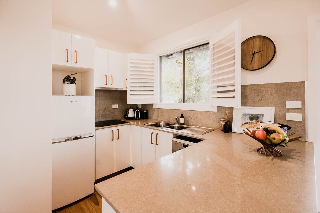 Nestled amongst the trees in the escarpment of the popular surf town of Thirroul, this stylish tiny house offers everything you need for a relaxing short or long stay. Start your mornings with a coffee on the private deck, unwind in the garden with a glass of wine at sunset, or take a short stroll to cafés, restaurants, shops and stunning beaches. Spend your days exploring the waves, coastal walks, vibrant food scene, then retreat up the hill to your peaceful, cozy escape on the Coal Coast.