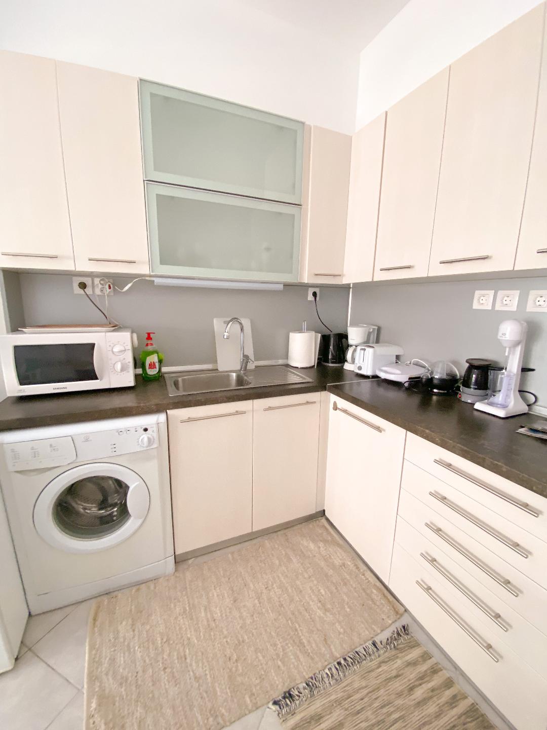 Este es un apartamento nuevo, bonito y tranquilo en Kassandria, Calcídica. Lo especial que este apartamento tiene para ofrecer es un gran balcón privado que los huéspedes pueden usar para relajarse o jugar si hay niños. El balcón tiene una gran mesa, dos tumbonas y hermosas vistas de la vegetación de Kassandreia y del pueblo. Los huéspedes tienen acceso a un aparcamiento privado situado justo debajo de la casa.