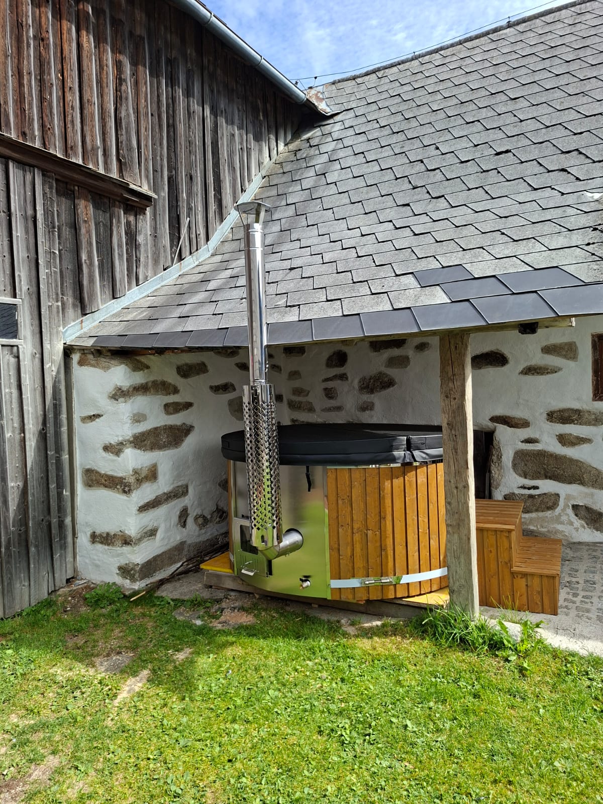 El chalet de nueva construcción en madera se completó con gran atención al detalle en marzo de 2024. Fue construido en un estilo moderno y cumple con los más altos estándares energéticos. El camino desde la plaza de aparcamiento privada, a través de la casa, hasta el porche cubierto con un nuevo jacuzzi eléctrico se ha diseñado a nivel del suelo. En el interior se puede estar cómodo con la estufa de leña y la sauna privada (gratuita). La ruta ciclista del parque nacional y las hermosas rutas de senderismo se encuentran a poca distancia a pie.
