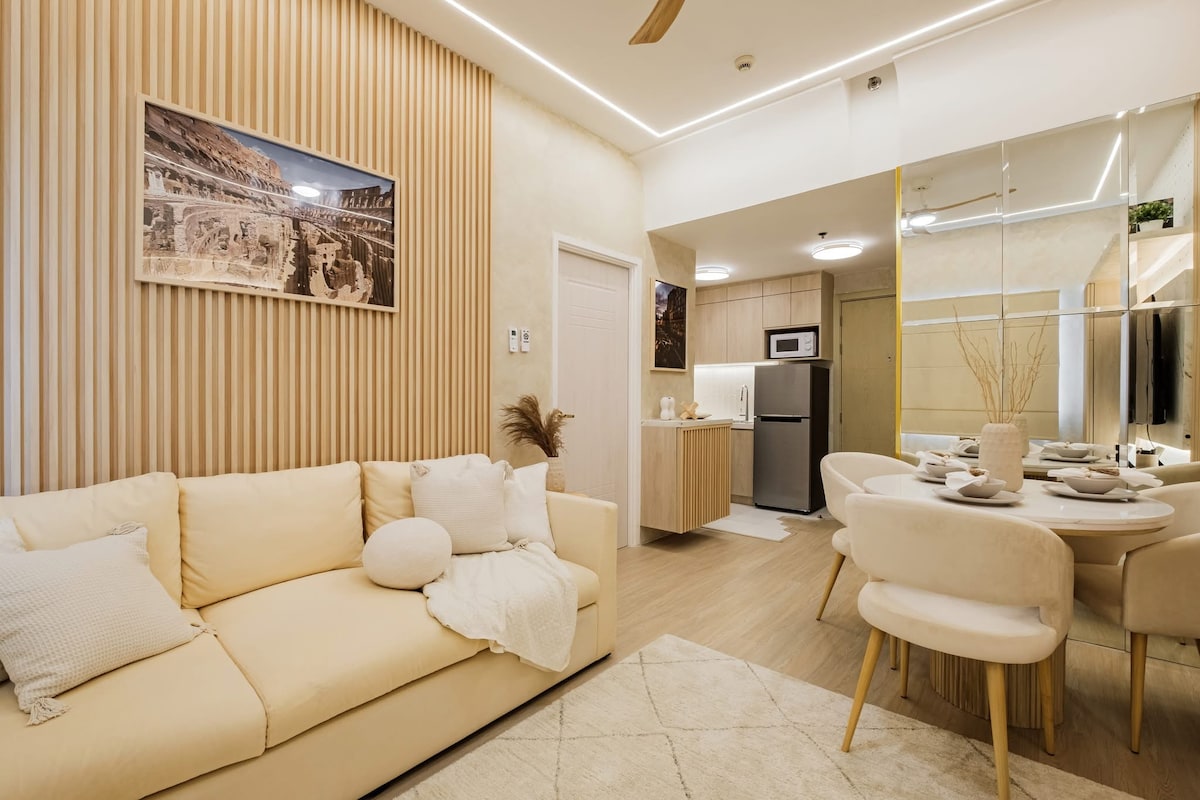 Descubre la mezcla perfecta de estilo moderno y chic en Casa Solares. Lo que hace que este lugar destaque es que es un apartamento inteligente con control de voz Alexa, una de las pocas unidades de apartamentos en Filipinas que tiene esta característica. 🙌 Esta unidad recién amueblada es un diseño de hotel de 30,80 metros cuadrados ubicado en el vibrante distrito de Mandaluyong y está a pocos minutos de Makati.