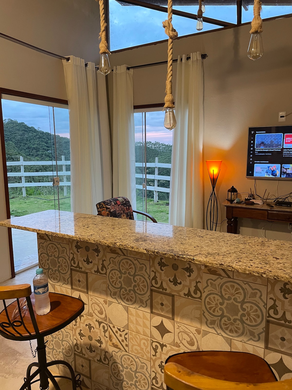 Un chalet moderno, rodeado de naturaleza, donde cada detalle ha sido diseñado para ofrecer comodidad y exclusividad. Chalet ubicado dentro del pueblo de Ibitipoca-MG, a 500 metros del centro. Contacto total con la naturaleza. Con piscina, bañera, chimenea (en el interior y al aire libre) y área gourmet. Desayuno incluido. Tenemos escaleras para acceder a ella. El desayuno se entrega una cesta en el propio chalet, con hora programada. Contamos con espacio de garaje cubierto.