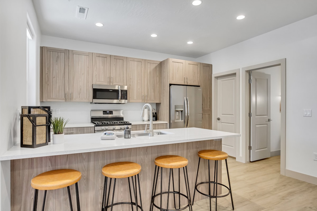 Lujosa casa de dos pisos con 3 dormitorios y 2,5 baños. Cocina contemporánea totalmente equipada. Dos habitaciones familiares, chimenea, garaje para 2 coches con puerto de carga de vehículos eléctricos de 50 amperios. Patio al aire libre para asar a la parrilla, cenar bajo las luces del café o asar s'mores sobre la mesa de fuego. A pocos minutos podrás practicar senderismo, ciclismo, paseos a caballo, rutas en todoterreno y visitar el anfiteatro Tuacahn, ¡y el centro acuático Sand Hollow está justo enfrente! Las canchas de piscina y pickleball están disponibles para todos los huéspedes. ¡Ven a disfrutar hoy!