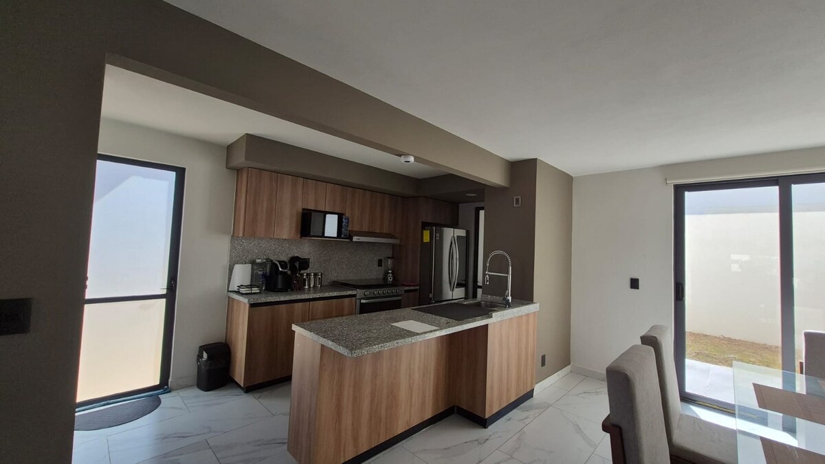 Siéntete como en casa a solo 20 min de AIFA. Casa privada, segura y elegantemente decorada para hasta 6 personas. Cuando es posible ofrecemos early check-in y late check out para que disfrutes desde temprano lo que pagas o salgas mas tarde. Check-in 24 h y opción de extender estancia. Cocina completamente equipada, TV e internet de alta velocidad ideal para home office. Disfruta alberca, asadores, canchas deportivas y juegos infantiles. Plazas comerciales muy cerca.