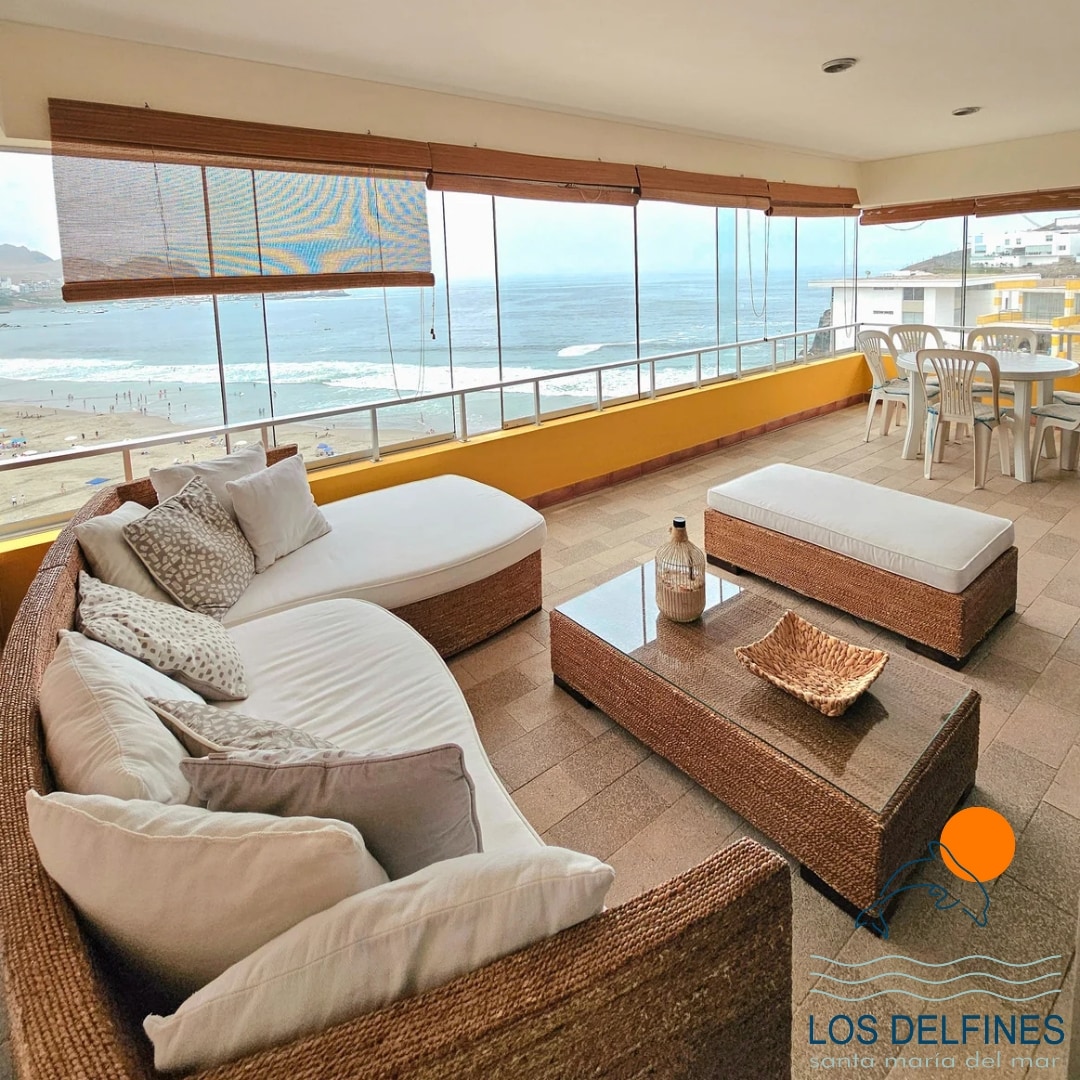 Hermoso departamento completamente amoblado y equipado, a 30 metros de la playa y cerca a un parque. Está ubicado en Santa María del Mar, frente al Club Esmeralda y a 40 min de la ciudad. Tiene una magnífica vista a la playa, relajante en cualquier temporada del año. Ideal para el relax ya sea caminando por el malecón o la playa o hacer deportes acuáticos. Santa María del Mar es una de las mejores playas de Lima, con agua potable 24 horas del día.