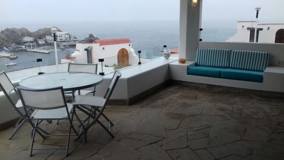 Miniapartamento tipo loft , con vista al mar. Perfecto para pasar unos dias inolvidables en pareja. Cuenta con cama king, mueble cama, tv smart, wifi, cocina a gas, menaje, sala, mini comedor, baño con terma agua caliente, lavadora. Además, podrás aprovechar unas noches fabulosas escuchando el sonido del mar y disfrutando de una hermosa vista. La playa es pequeña, casi privada. La piscina es un area común de la casa, habilitada de 10 am a 6pm. NO BRINDO TOALLAS NI ARTICULOS DE ASEO PERSONAL.