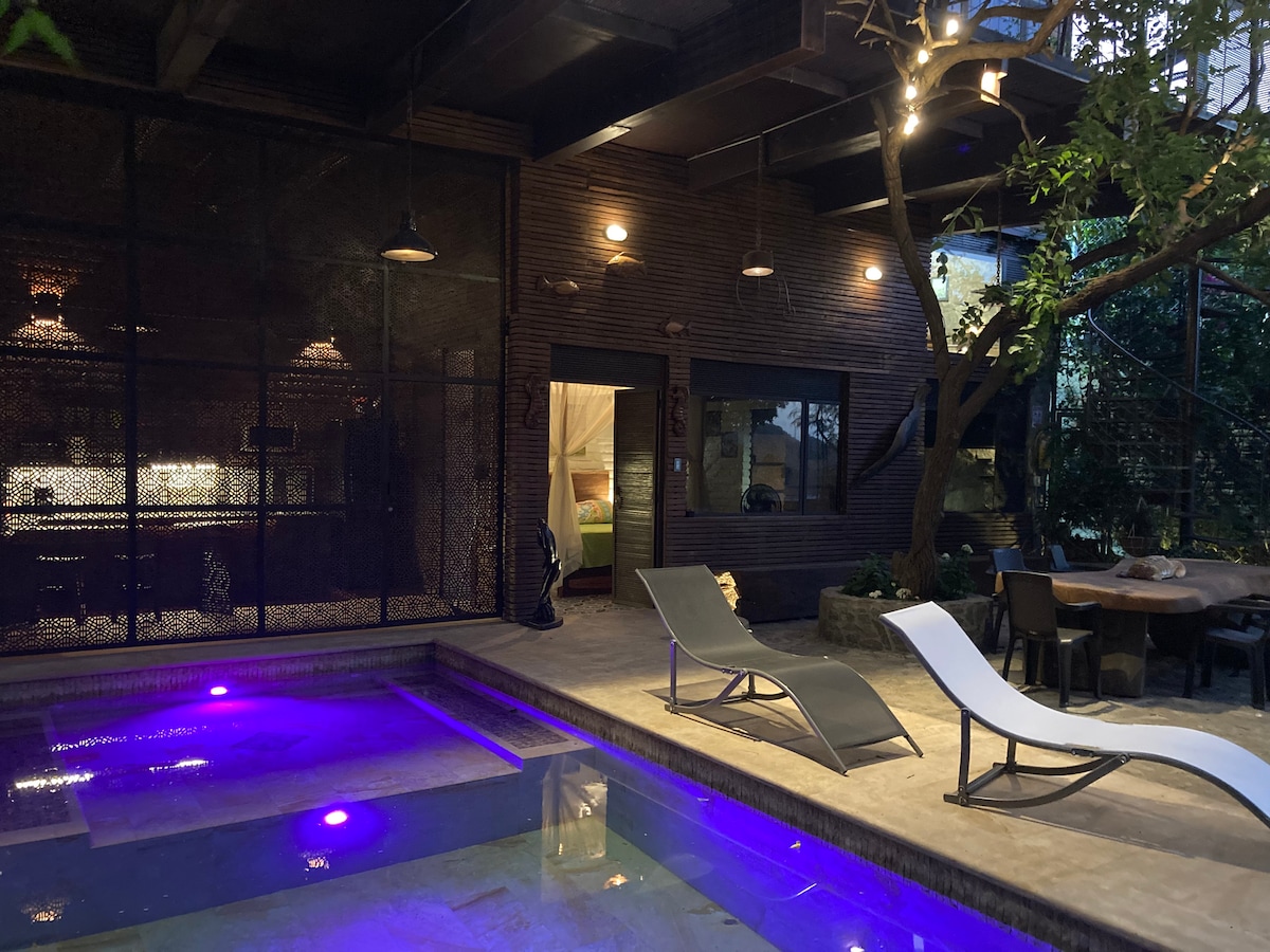 Todo lo que has buscado para un verdadero descanso en un solo sitio. Disfruta de esta encantadora suite, confortable y moderna con vista a una gran reserva natural y la playa. Podrás disfrutar de una estupenda estadía sin ruidos, relajar tus ojos y contemplar un ambiente natural mientras estas en el jacuzzi. Desde este ambiente espactacular podras tambien trabajar en un espacio idóneo y atender tus asuntos personales de forma cómoda y privada con conexión wifi permanente y estable.
