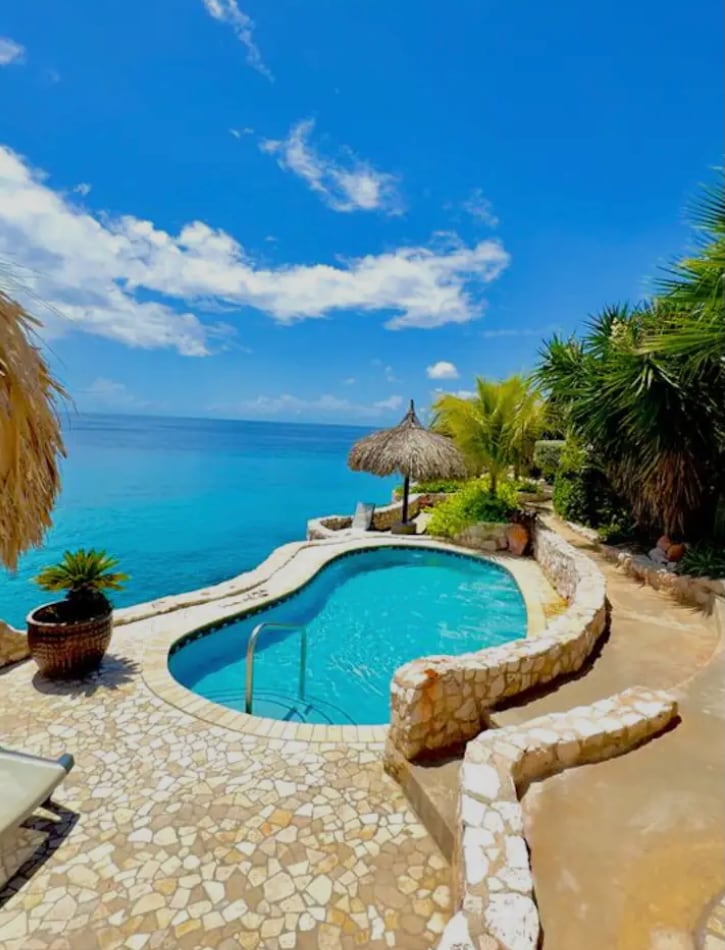 Esta exclusiva casa de hormigón impresa en 3D cuenta con una cueva privada con acceso directo al mar. Sal del bungalow, entra en la cueva y sumérgete en las aguas cristalinas del Caribe. Observa delfines, atunes y corales vibrantes mientras buceas. Ofrecemos el equipo, la jarra de enfriamiento y los sups de forma gratuita. Disfruta de un cóctel en el jacuzzi junto al acantilado con impresionantes vistas al mar y los mejores atardeceres de la isla. La propiedad tiene dos bungalows privados con imagen de espejo. Ponte en contacto con nosotros para alquilar ambos y tener todo exclusivo.