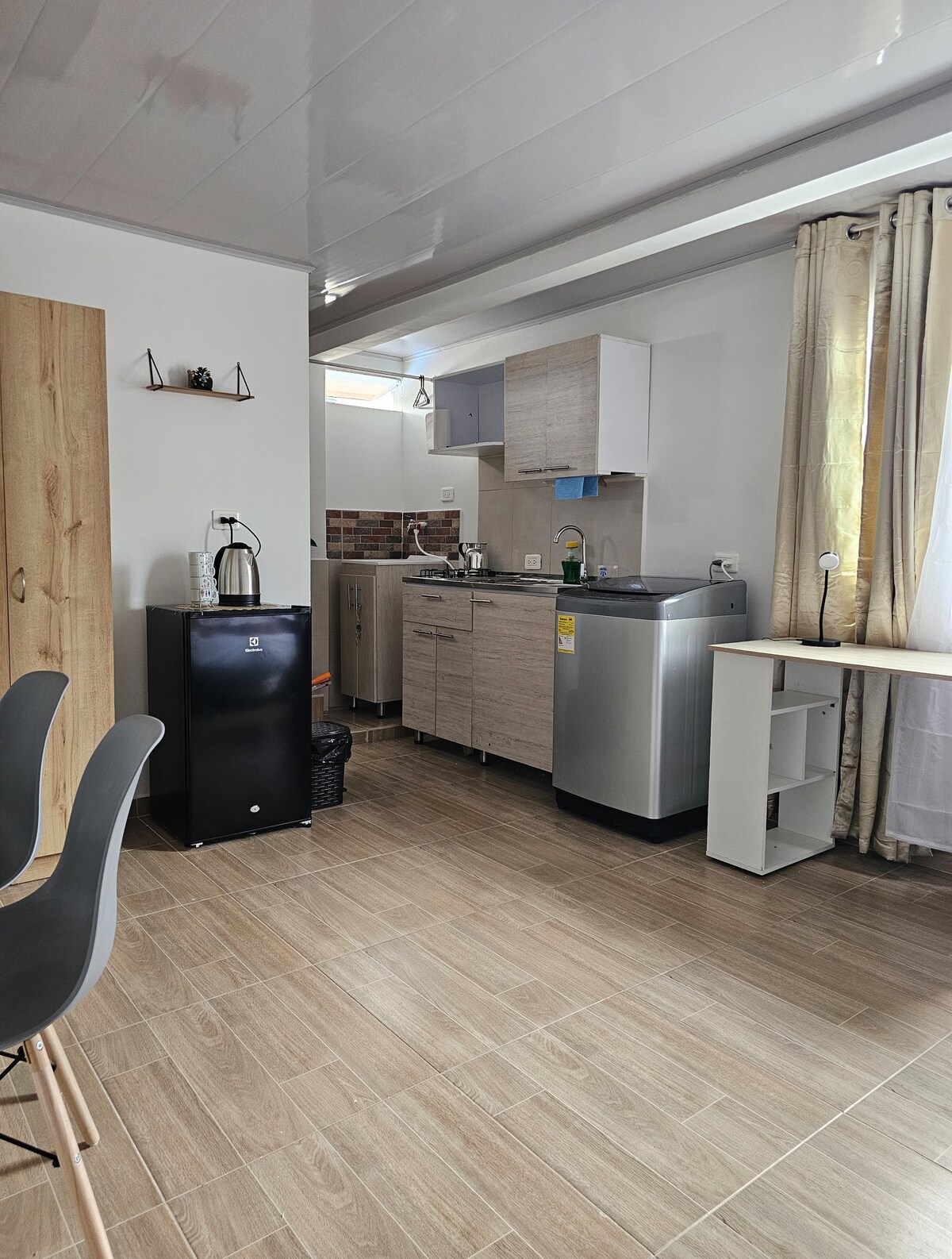 Disfruta de una experiencia con estilo en este alojamiento céntrico en la trasnochadora, querendona y morena. Ubicado en una zona tranquila y segura, donde encontrarás supermercados, farmacias, bancos, parques, restaurantes y bares a menos de 3 cuadras. También hay buena locomoción sobre la carrera donde se encuentra ubicado. El hospedaje está bien dotado de toallas, implementos de cocina y artículos de higiene como jabón y papel higiénico lo que harán de tu estadía algo muy práctico y cómodo.
