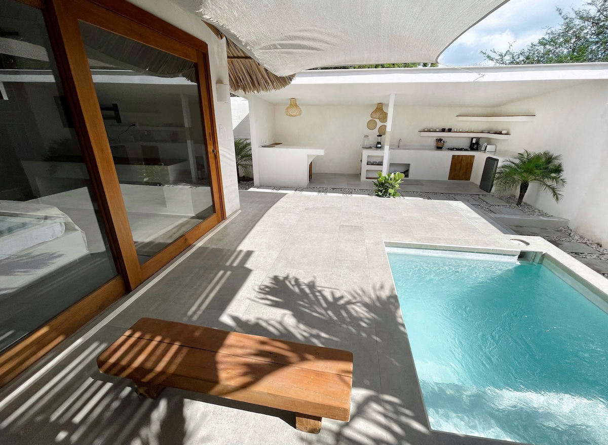 ✨🌺 BIENVENIDO A MAHALO 🌺✨ [NUEVA COCINA PRIVADA AL AIRE LIBRE] ¿Estás listo para un buen viaje a Nicaragua? ¡Descubra nuestra hermosa suite Uraka! Está a solo unos pasos de la playa y es tu propio lugar tranquilo para relajarte y divertirte. Imagínate comenzar tus mañanas en un espacioso dormitorio tamaño king que se abre directamente a tu terraza privada con jardín. Puedes sumergirte en tu propio piscina y preparar un buen café en nuestra nueva cocina al aire libre. ¿Qué te parece?