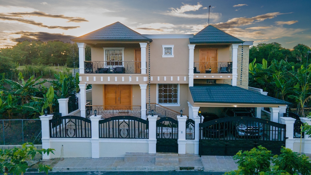 Espaciosa cabaña con vista a la montaña!! Vasta y acogedora, esta casa estilo chalet de 4 habitaciones distribuidas en 2 niveles, está localizada en el verde poblado de Las Guaranitas, La Vega, en un punto medio entre el pueblo de Jarabacoa, el más completo destino de turismo de montaña en la República Dominicana, y la ciudad de Santiago de los Caballeros, urbe de gran interés histórico-cultural, exquisita oferta gastronómica y vibrante vida nocturna.