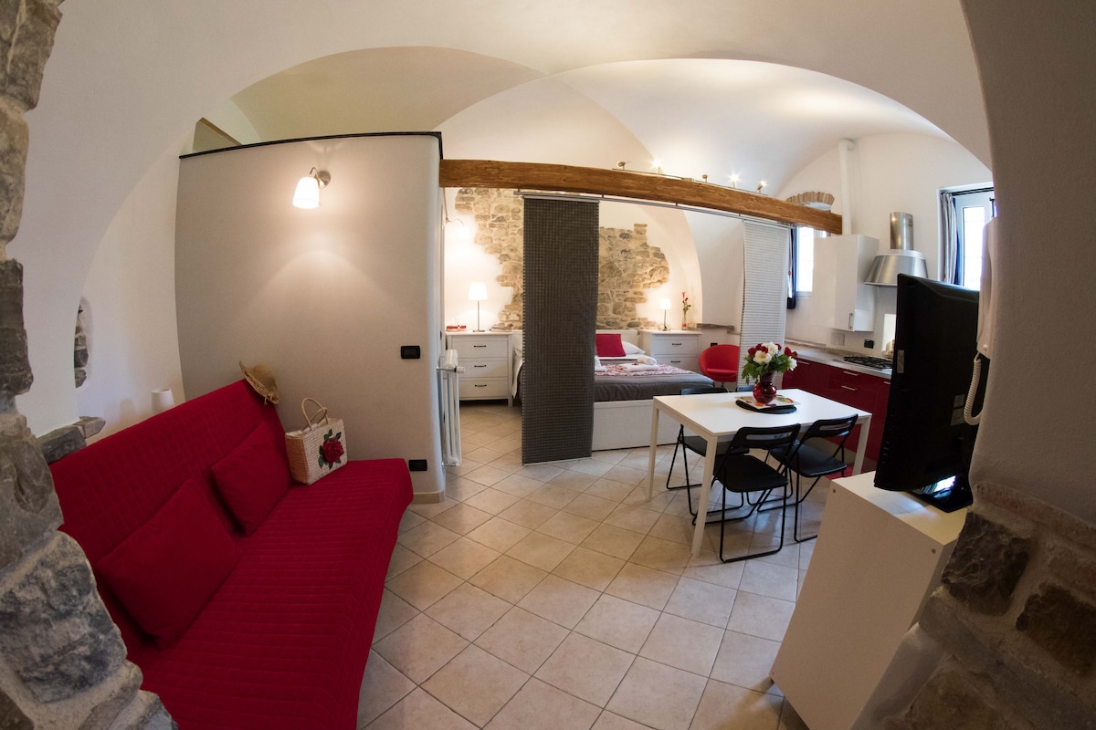 En el edificio del siglo XVIII en el "Parasio" de Porto Maurizio, barrio histórico con vistas al mar, apartamento de gran tamaño en dos niveles, tranquilo, acogedor y con vistas al puerto deportivo y la ciudad. Se encuentra a poca distancia de las playas de arena de «Marina» y «Prino», a las que se puede llegar a pie en 5 minutos recorriendo escaleras panorámicas o con los ascensores públicos gratuitos (con parada a 20 metros de la puerta de entrada).