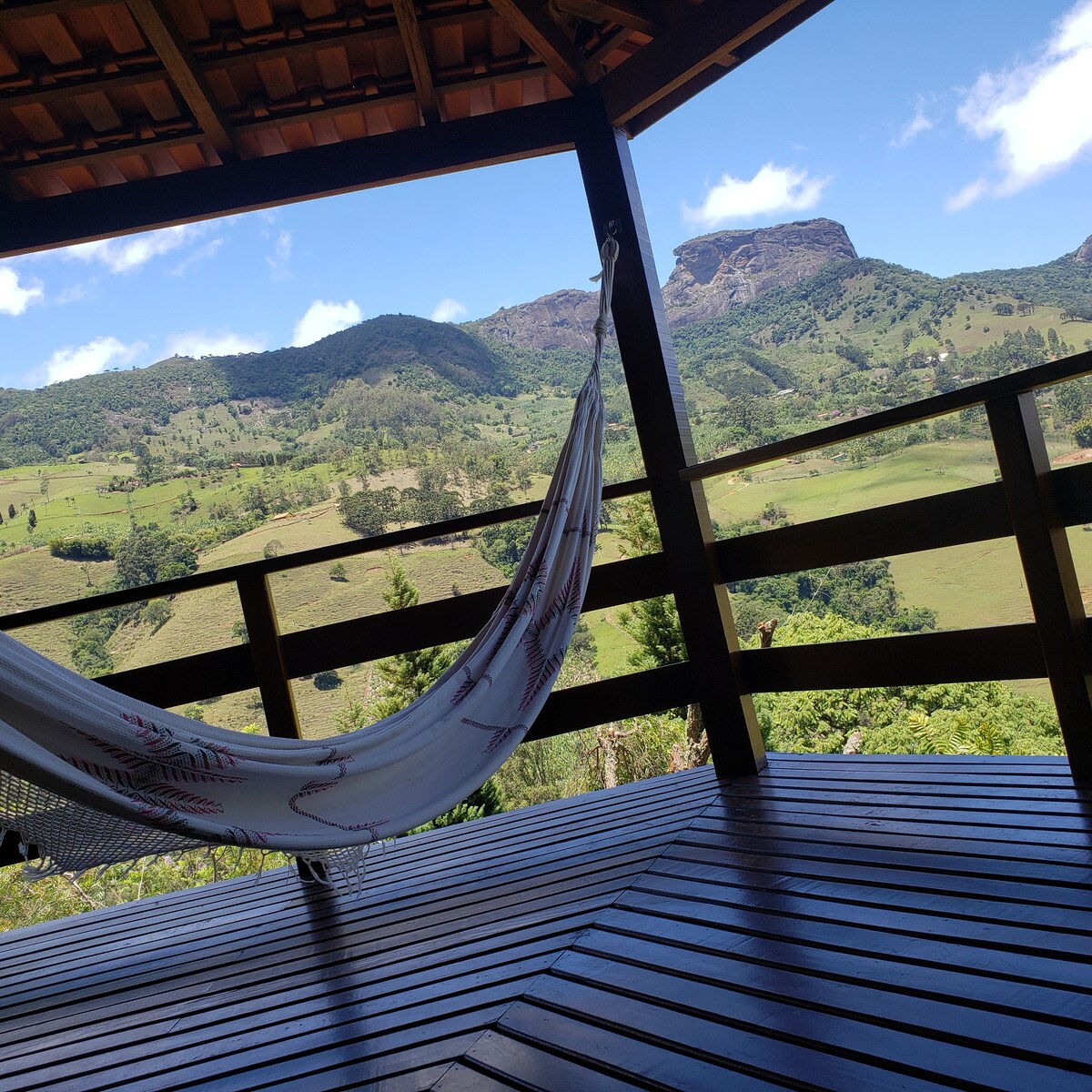 REFUGIO ÚNICO EN MANTIQUEIRA CON VISTAS PRIVILEGIADAS A PEDRA DO BAÚ Casa acogedora, decorada con recuerdos y cariño Chimenea, Smart TV Silencio y aire fresco Experiencias con senderos, cascadas y fogatas bajo el cielo estrellado *Wifi de Starlink* Cocina completa con estufa de leña y Nespresso para preparar comidas deliciosas Balcón grande, hamaca, huerto y lago Agua y paz en Mine A 33 km de Campos do Jordão, en una región rica en gastronomía y recorridos ecológicos El equilibrio perfecto entre comodidad y naturaleza.