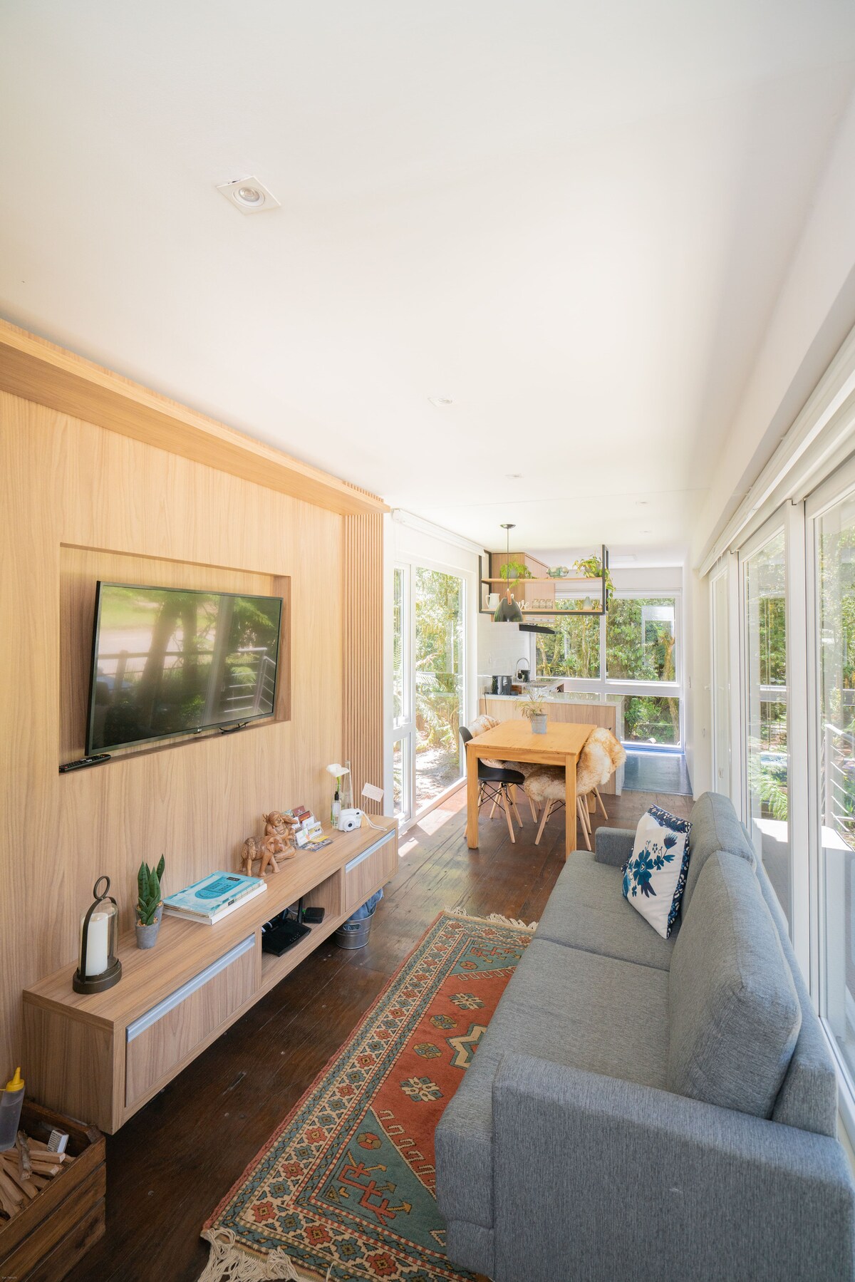 Casa Caúna es una cabaña moderna en la Serra Gaúcha, rodeada de naturaleza y con total privacidad. Ubicada en la mata atlántica, ofrece contacto directo con aves, vegetación nativa y vida silvestre. Es un espacio para desacelerar: escuchar música, encender el fuego, cocinar con calma, relajarse en la bañera inspirada en onsen japonés o disfrutar de una copa de vino junto a la fogata. Para quienes necesitan trabajar de forma remota, el Wi-Fi es de alta calidad (fibra 500 Mbps).