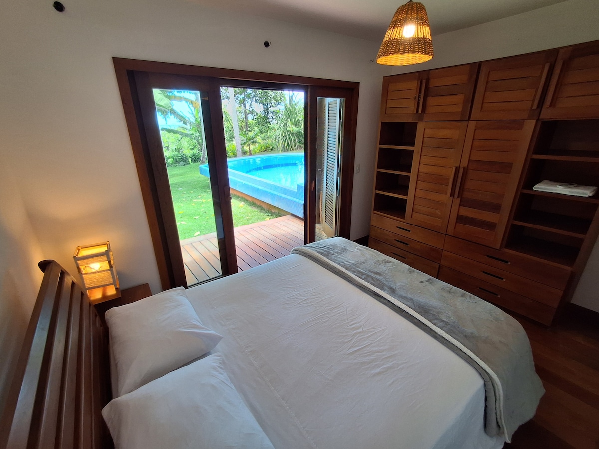 Clean and peaceful retreat with a private pool, close to the beach and surrounded by nature. Located in a quiet, green area of Arraial d’Ajuda, Casa Lior combines the best of both worlds: the peace and connection with nature, with the convenience of being just minutes away from beaches, restaurants, and local markets. The neighborhood is safe, with permanent residents and 24-hour security. Within a few minutes’ drive, you can reach the historic center and the region’s most famous beaches.