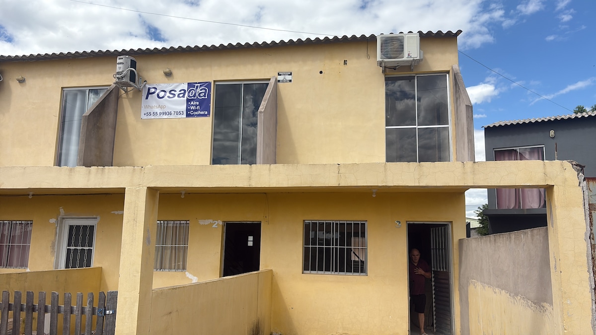 Departamento individual en la parte trasera de la casa, con total privacidad. A 1 minuto de la ruta de entrada de la ciudad. Hay dos dormitorios, ambos con aire acondicionado, baño privado, sala de estar con smartv, cocina completa, garaje y wifi. Dormitorio 1: cama doble + cama individual con cama supletoria Dormitorio 2: cama doble + cama individual con cama supletoria Habitación: sofá cama. Casa tiene capacidad para 8 personas. LLEGADA DESPUÉS DE LAS 17:00 P. M. 😃👆🏻 ¡No aceptamos mascotas!