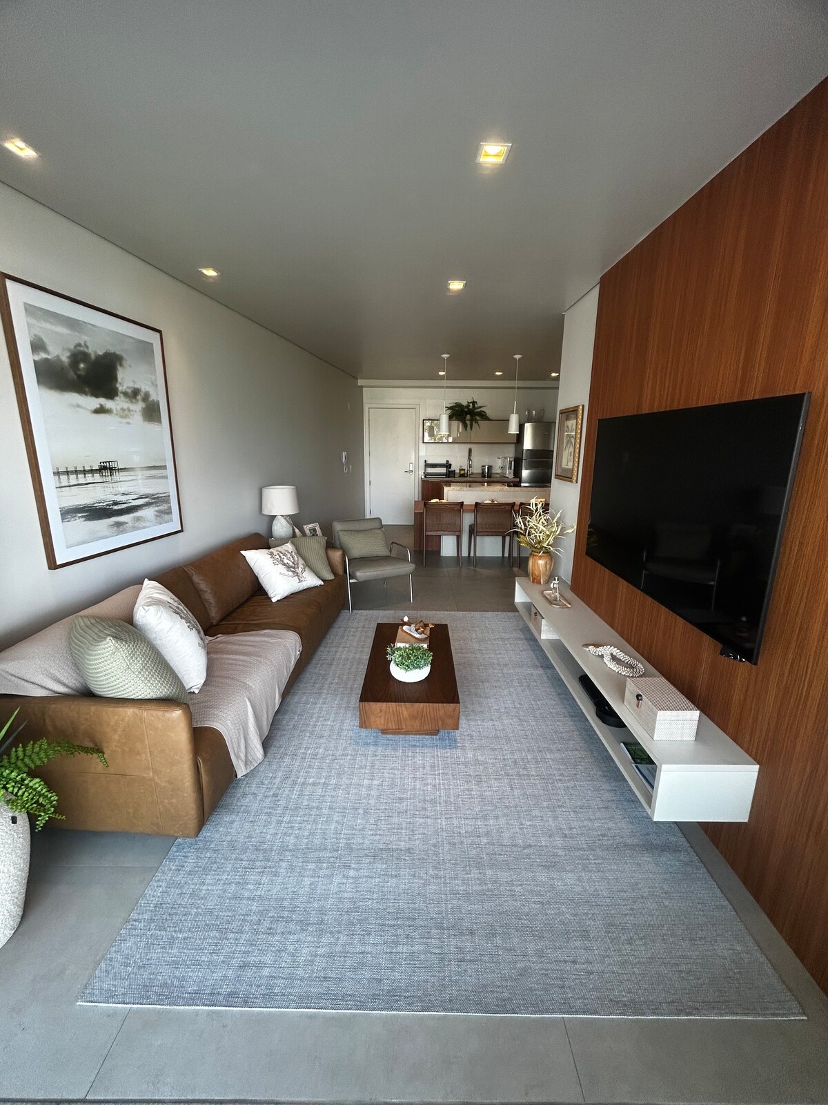 Increíble apartamento en un edificio nuevo, con una decoración sofisticada y funcional. Nuestra casa en invierno que ofrecemos a los huéspedes en verano. Aire acondicionado split. Wifi de 240 Mb. TV de 60" en la sala de estar y de 35" en las habitaciones. Cocina, horno eléctrico, microondas. Nevera y congelador. Cocina y despensa totalmente equipadas. Lavavajillas, lavadora/secadora. 1 suite con cama Queen y un dormitorio con baño y dos camas box. Balcón gourmet cerrado con vidrio, con parrilla y nevera extra para bebidas.