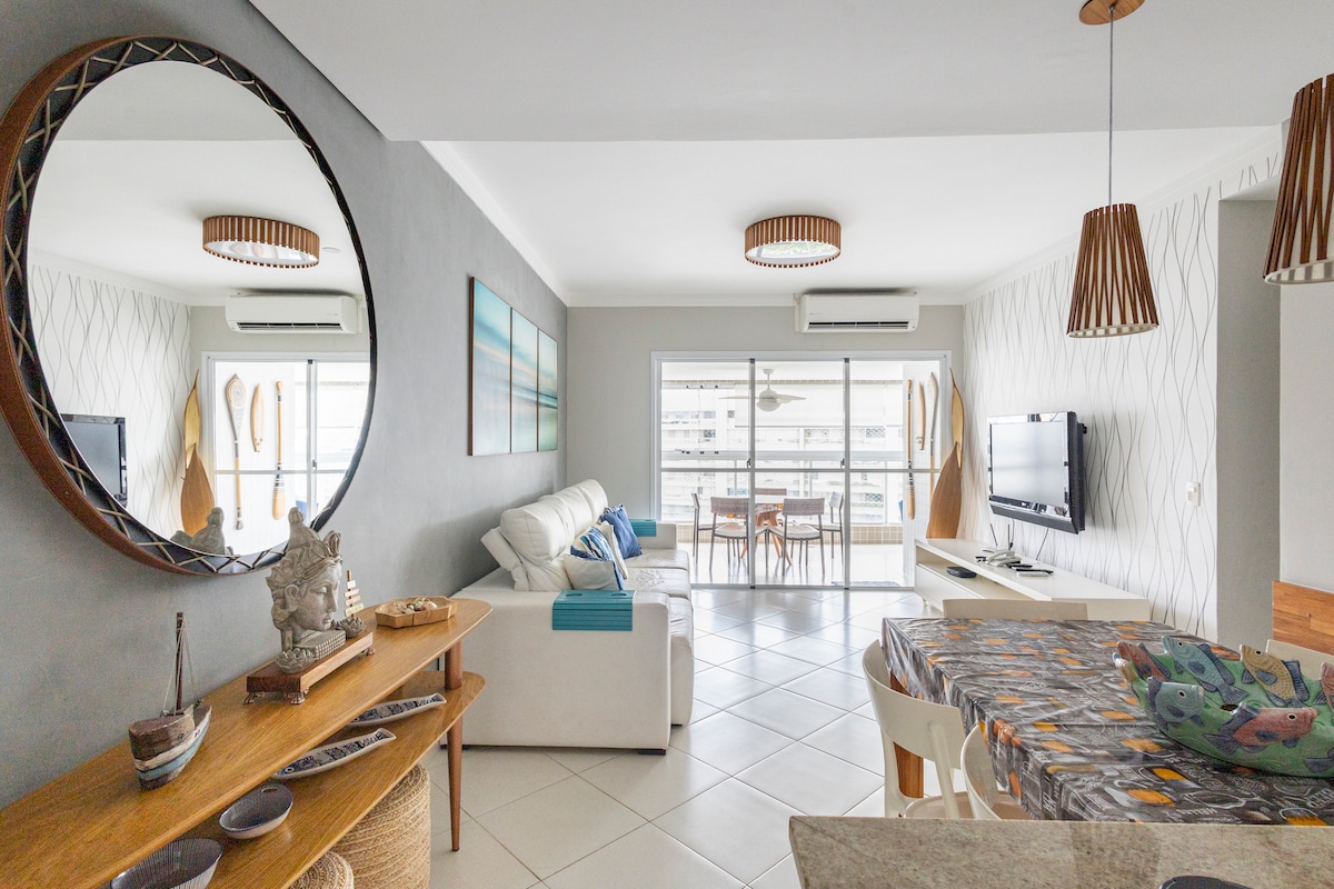 ¡Siéntete como si estuvieras en tu casa de playa! Apartamento bien decorado y muy bien equipado, con aire acondicionado frío y caliente en los dos dormitorios (01 suite), sala y suite con TV, internet de alta velocidad, Netflix, HBO, Wi-Fi. Su familia estará cerca de todo, excelente ubicación: 2 hipermercados, 3 farmacias, restaurantes, Burger King y feria libre, Praia da Enseada a una cuadra. Posible Self Check in, *traer ropa de cama y toallas.