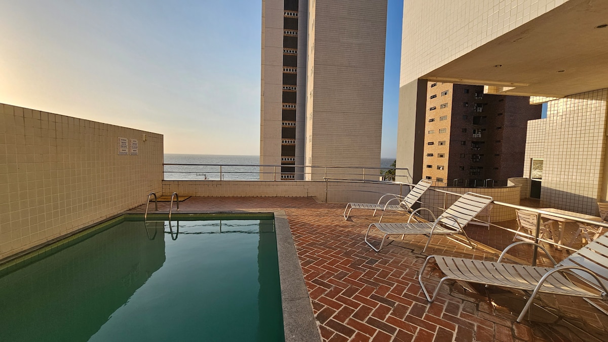 Moderno y acogedor estudio con vistas al mar, situado en la Av. dos Holandeses, en Calhau. El condominio ofrece una zona de ocio completa con piscina, gimnasio, tienda de comestibles y conserje las 24 horas. El apartamento tiene wifi, una Smart TV, una cocina equipada y un ambiente con aire acondicionado. Cerca de la playa, bares y restaurantes, es ideal para quienes buscan comodidad y practicidad en São Luís