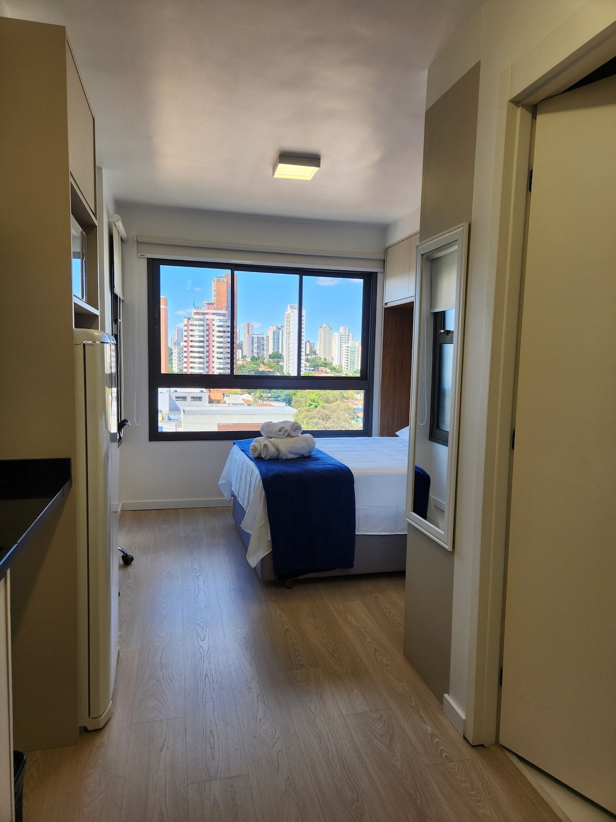 Studio moderno e equipado, com 25m², possui ambiente integrado com a cozinha e 1 banheiro, com vista e fechamento de vidro. Este apartamento tem todo o conforto que você precisa, para ter uma hospedagem agradável em São Paulo. O prédio conta com Quadra de Beach tênis, coworking e academia, além de máquinas de lavar roupa (com custo adicional), em área comum do prédio. Venha se hospedar no coração do Jardins, com bons restaurantes e lojas, a poucos passos da rua Oscar Freire!