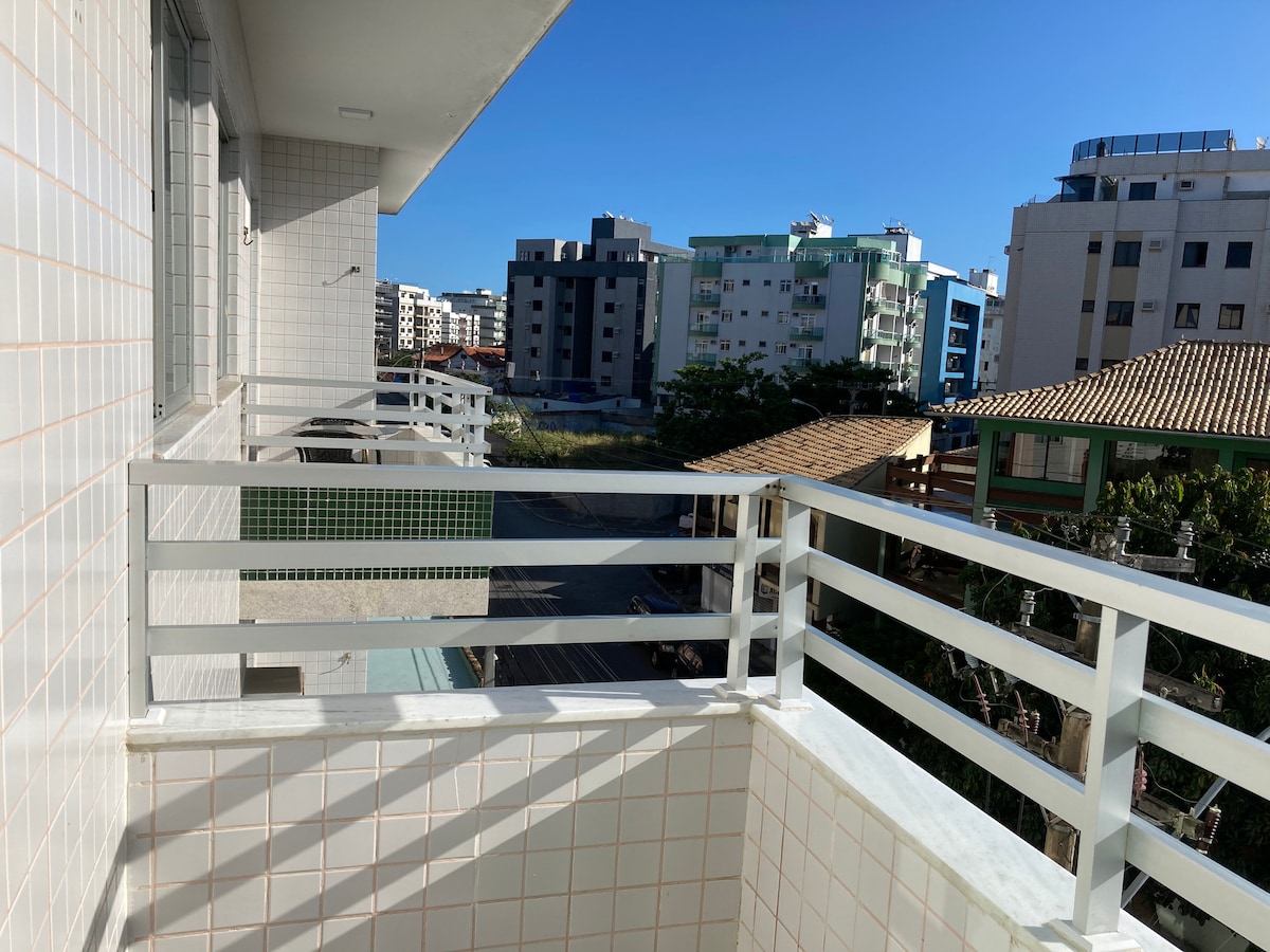Acogedor departamento de 1 HABITACIÓN con 1 cama doble + sofá cama doble y SALA con sofá cama doble, 2 BAÑOS, en un condominio con garaje, piscina, sauna y parrilla, junto a la estación de autobuses, en la zona céntrica de la ciudad, frente al supermercado Extra y cerca de Greenfruit, cerca de Praia do Forte (1,2 km, 20 minutos a pie o 5 minutos en automóvil), cerca de Rua Porto Alegre (vida nocturna con pizzerías, bares, snack bars, autoservicios, etc.), cerca de tiendas y del centro de la ciudad, con acceso a Arraial do Cabo.