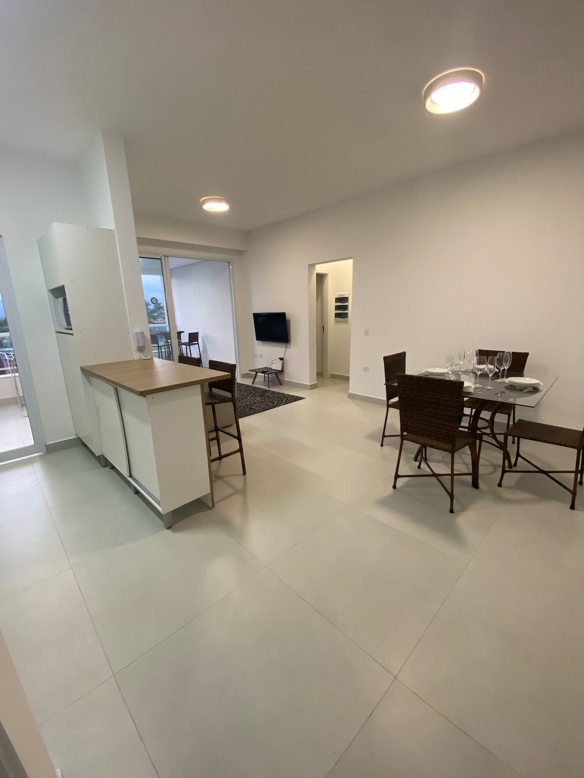 Apartamento nuevo de alto estándar, decorado y acogedor, con una ubicación privilegiada en el centro de Juquehy, en la calle del centro comercial Monjolo y a 150 metros de la playa, por lo que se puede ir andando a todas partes. El apartamento tiene 73 metros cuadrados y tres lugares de estacionamiento, sala de estar espaciosa con cocina abierta, dos dormitorios, uno de ellos en suite y aire acondicionado en todas las habitaciones, Wi-Fi, televisión. Tiene capacidad para dos personas en cada habitación y es posible acomodar a dos personas más en la sala, ropa de cama no incluida.