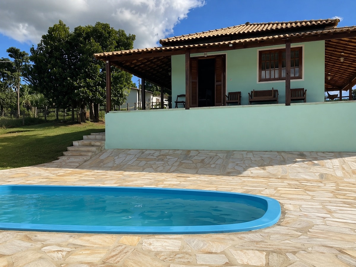 Casa con 3 dormitorios, sala de estar, cocina, 1 baño, balcón con hamacas, parrilla y una pequeña piscina al aire libre. ¡Ubicado en un valle, con una hermosa vista de las montañas! Si te gusta estar en contacto con la naturaleza, ¡es el lugar correcto! Para aquellos que disfrutan caminando, puedes dar un paseo por la cascada y el bar de la Luna (2 km) y en la cascada Eubiose (1 km). Estamos a 4 km del centro de São Thomé. ¡Te damos la bienvenida!