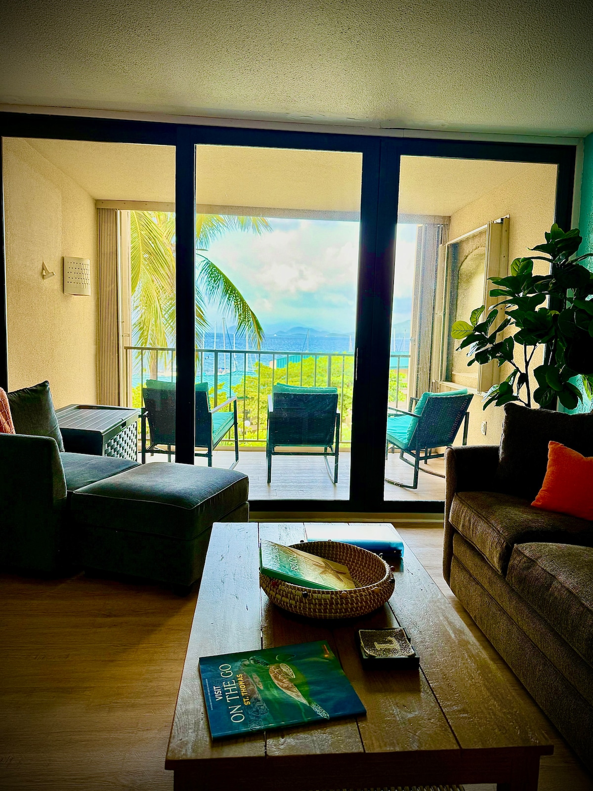 Unidad muy popular recientemente remodelada, muy querida por nuestros huéspedes por su comodidad y asequibilidad, ahora recién renovada y hermosa. Fresco, tranquilo y perfectamente ubicado con vistas a Sapphire Beach con vistas panorámicas de las Islas Vírgenes Británicas y San Juan. A pocos pasos de la famosa playa de arena blanca de Sapphire, aguas cristalinas y fabulosos arrecifes para bucear con tortugas y peces tropicales luminosos. El precio subirá en 2026 para reflejar las numerosas mejoras, pero respetaremos los precios de 2025 si reservas ahora.