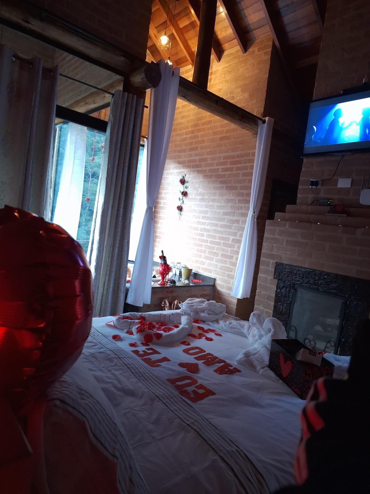 - Cama doble tamaño queen (opción de convertir en 2 camas individuales) - TV de 50" y wifi Microondas, sándwiches, minibar - Hervidor eléctrico y cafetera Dolce Gusto. - Chimenea canadiense - Jacuzzi. - WC con suelo radiante. - Toallero - Secador de pelo. - Aire acondicionado (frío/calor) - Terraza con vista a Pedra do Baú. Además: - Desayuno incluido/servido en la habitación. - Ropa de cama y baño, champú, acondicionador, jabón, espuma/sales de baño