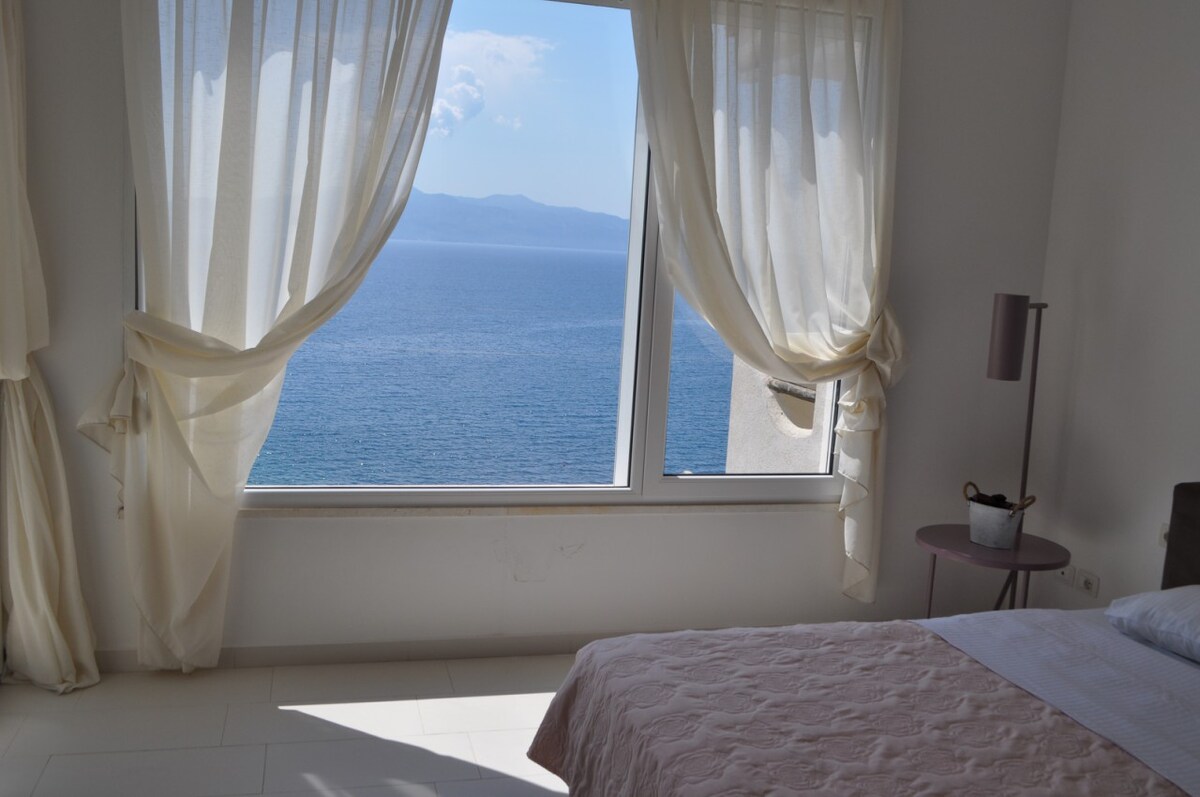 Lujosa villa de 2 pisos frente a la playa dentro de Bougainville Bay Resort con impresionantes vistas al mar Jónico y a la isla de Corfú. Cuenta con 2 dormitorios, baño completo, enorme terraza a pocos metros del mar. Incluye estacionamiento privado con escrituras, pisos de granito italiano en todas partes, cocina de diseño, TV 4K de 55 pulgadas con Netflix y muebles nuevos. A metros del mar, con internet de fibra gratuito (WiFi), lavandería en la unidad y servicio de limpieza. Acceso a piscinas, spas y sombrillas de playa (tarifa adicional).