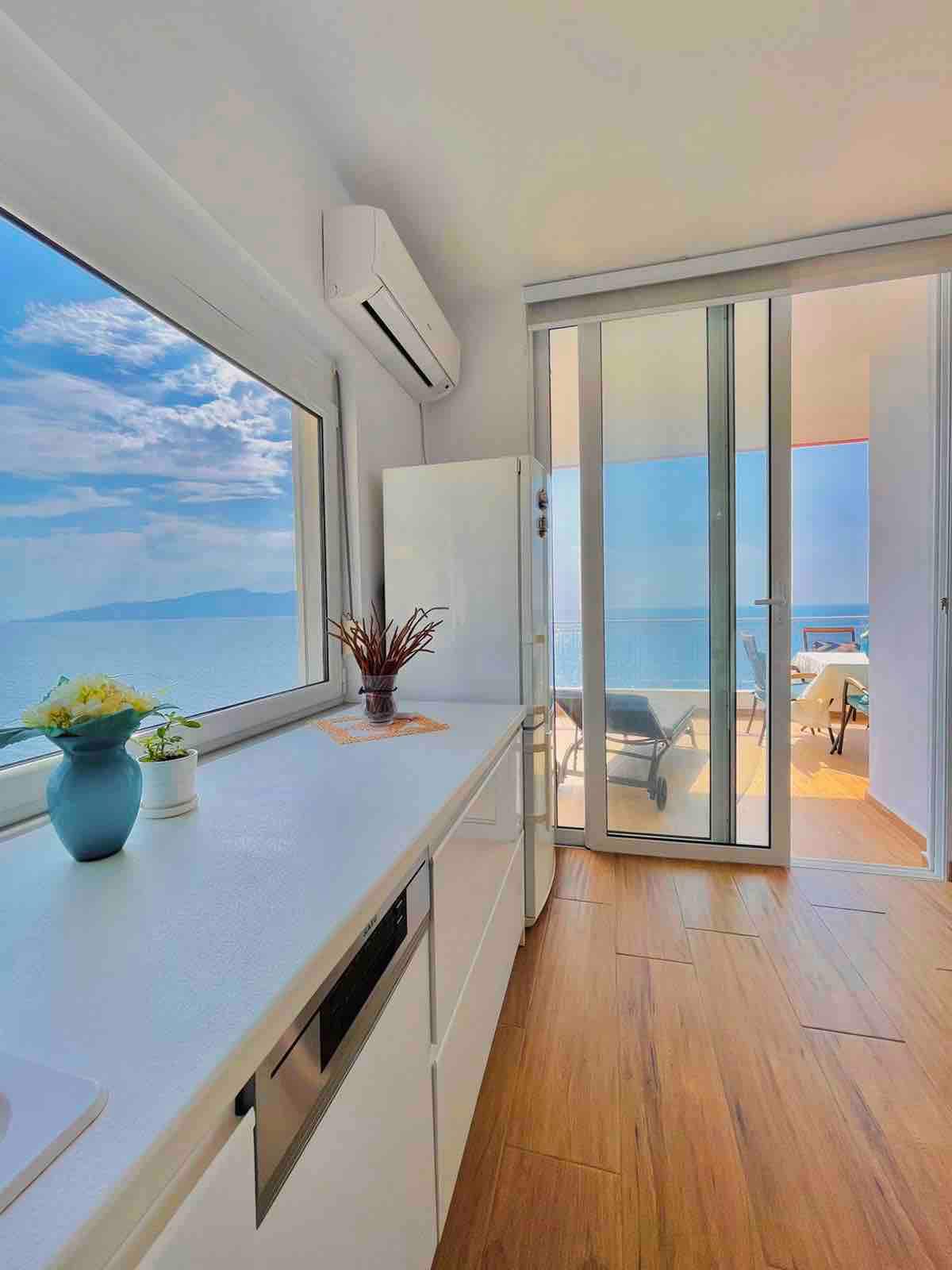 Este apartamento en primera línea de playa se encuentra frente al mar y a Corfú. Ubicado en la última planta, entre Santa Quaranta y los barrios más concurridos, permite una mezcla de dinamismo y tranquilidad de la ciudad. La playa privada está a sólo un ascensor de distancia (literalmente abajo). El pintoresco Blue Eye y las ruinas de Butrint, protegidas por la UNESCO, se encuentran a 15 minutos en coche. En los alrededores hay restaurantes que ofrecen cocina albanesa, mediterránea e internacional y muchos supermercados.