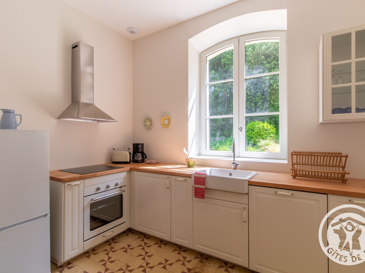 Cambio de aires y tranquilidad absolutos en el jardín de nuestra mansión del siglo XVI totalmente restaurada y amueblada con mucho gusto. Casa rural para 2 personas con terraza independiente en el jardín de la mansión. Sala de estar con cocina equipada (equipamiento detallado a continuación), un dormitorio con una cama doble estándar (140x190 cm), un baño (equipado con lavadora) y aseo. También podrá disfrutar de un Instituto de Estética y Bienestar situado en el recinto de la Mansión.
