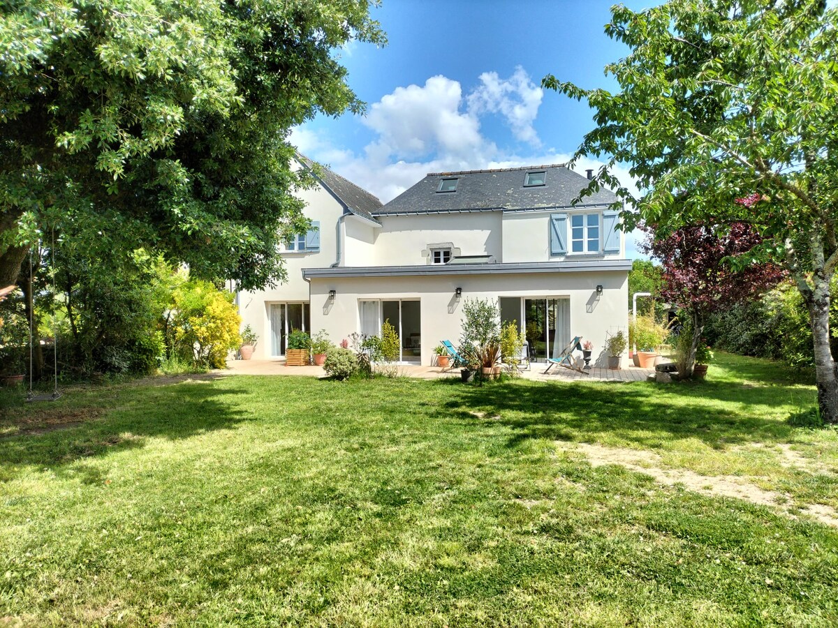 Relájese en este alojamiento tranquilo y encantador. Pasará su estancia en el corazón de un parque arbolado con árboles centenarios y edificios que datan del siglo XIX, donde se oyen cantar los pájaros desde el amanecer. Podrá disfrutar de las numerosas rutas de senderismo y ciclismo de montaña desde la casa o simplemente quedarse al lado de la piscina. La orilla del mar y Vannes se encuentran a 15 km en coche. El centro de la ciudad está a 2 minutos en coche con todas las comodidades. ¡Bienvenido a Ty Laouen!