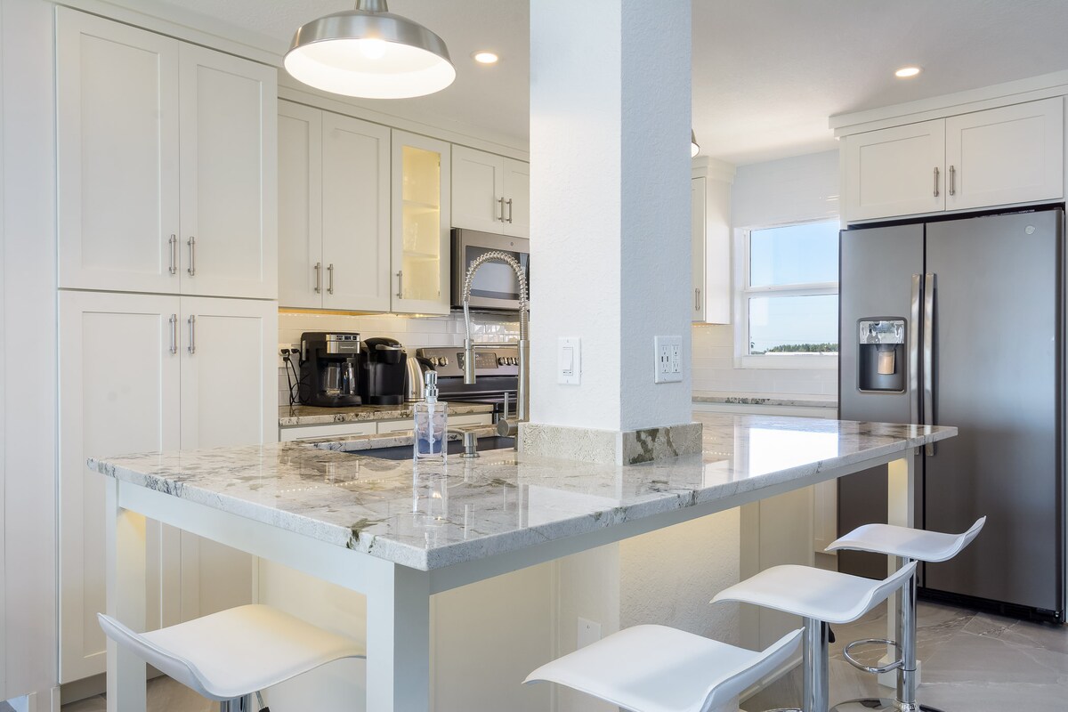¡A pocos pasos de la arena! Lujosa y espaciosa suite de 1 dormitorio y 1 baño. Impresionantes vistas al mar desde todos los ángulos, incluyendo la corredera de triple vidrio, el balcón y las ventanas de gran tamaño del dormitorio. Ve y siente los lanzamientos de cohetes desde el balcón privado. Perfecto para aventureros acuáticos o amigos íntimos. Decorado con buen gusto y recién reformado, espera una ubicación idílica para divertirte en el agua con lujo para un máximo de 4 huéspedes. Cerca de Disney/Aeropuerto de Orlando, Centro Espacial Kennedy, Puerto Cañaveral, Cocoa, Melbourne.