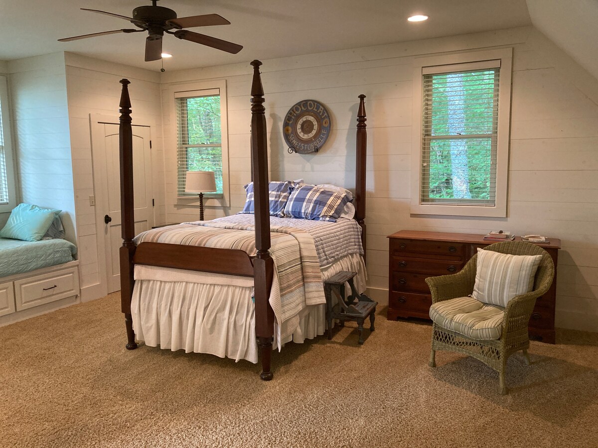 At 4000+ feet & only a 10 min walk to town on the Rhododendron Trail. Totally renovated 2017!! Light & sunny 3 bed/2 bath, 750 sq. ft. Originally built by my wife's g-grandmother in the 1940's. Floor to ceiling shiplap, 17 ft. ceilings, hardwoods, reclaimed barn wood, custom fixtures, heated marble/slate bath floors, tankless water heater, gas fireplace, porch, Wifi, TV, washer/dryer, kitchenette. Beautiful gardens! Classic Highlands charm with modern comforts! Hike, fish, shop, or relax!