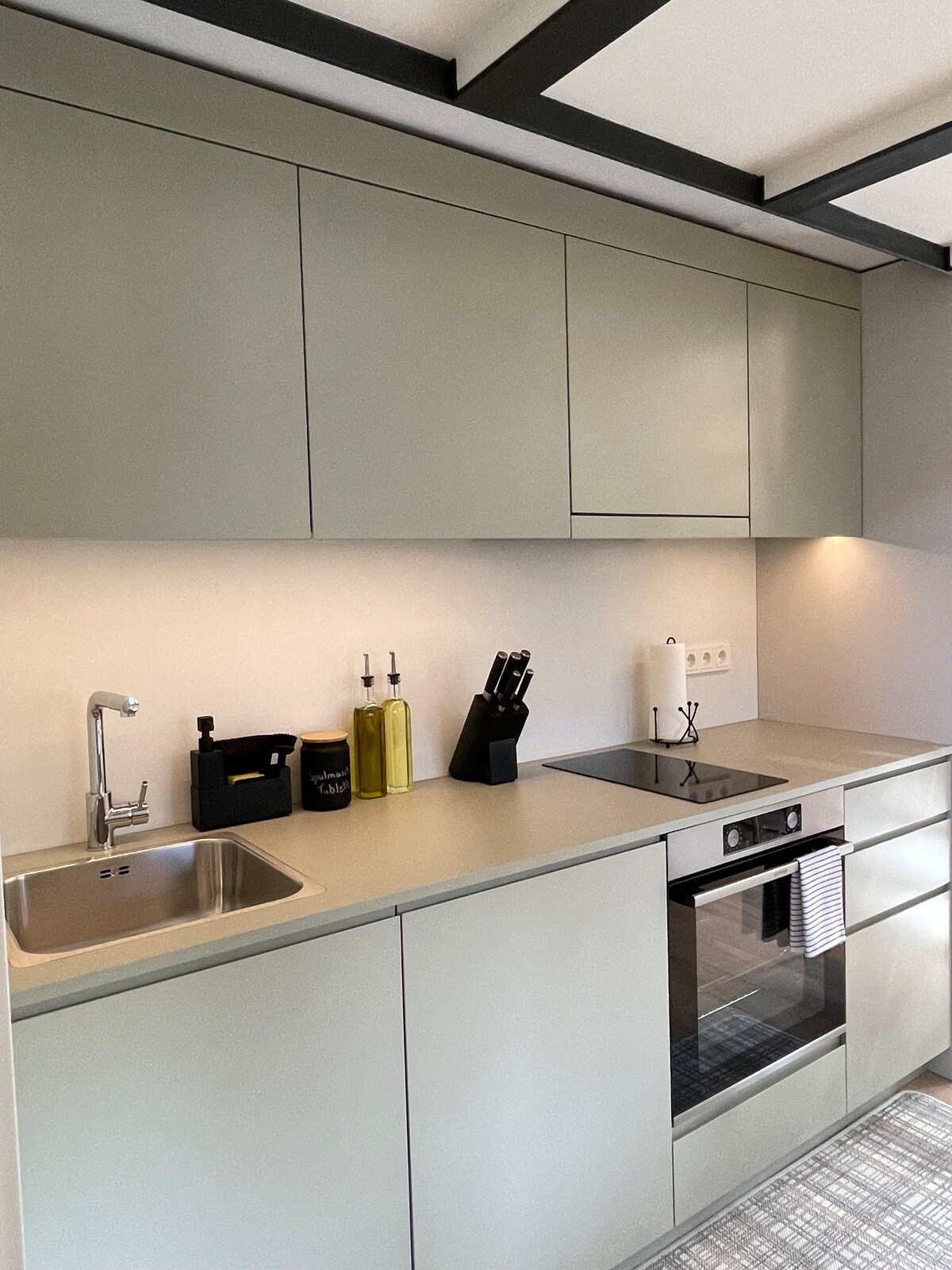 Es handelt sich um ein ausgebautes Dachgeschoss mit einem Wohnraum (60qm) inkl. Ausziehcouch (140x200cm) und einer hochwertigen Küche, einem getrennten Schlafraum mit Doppelbett (140x200cm) sowie separatem Duschbad mit Toilette. Der Zugang erfolgt über ein abgetrenntes Treppenhaus.