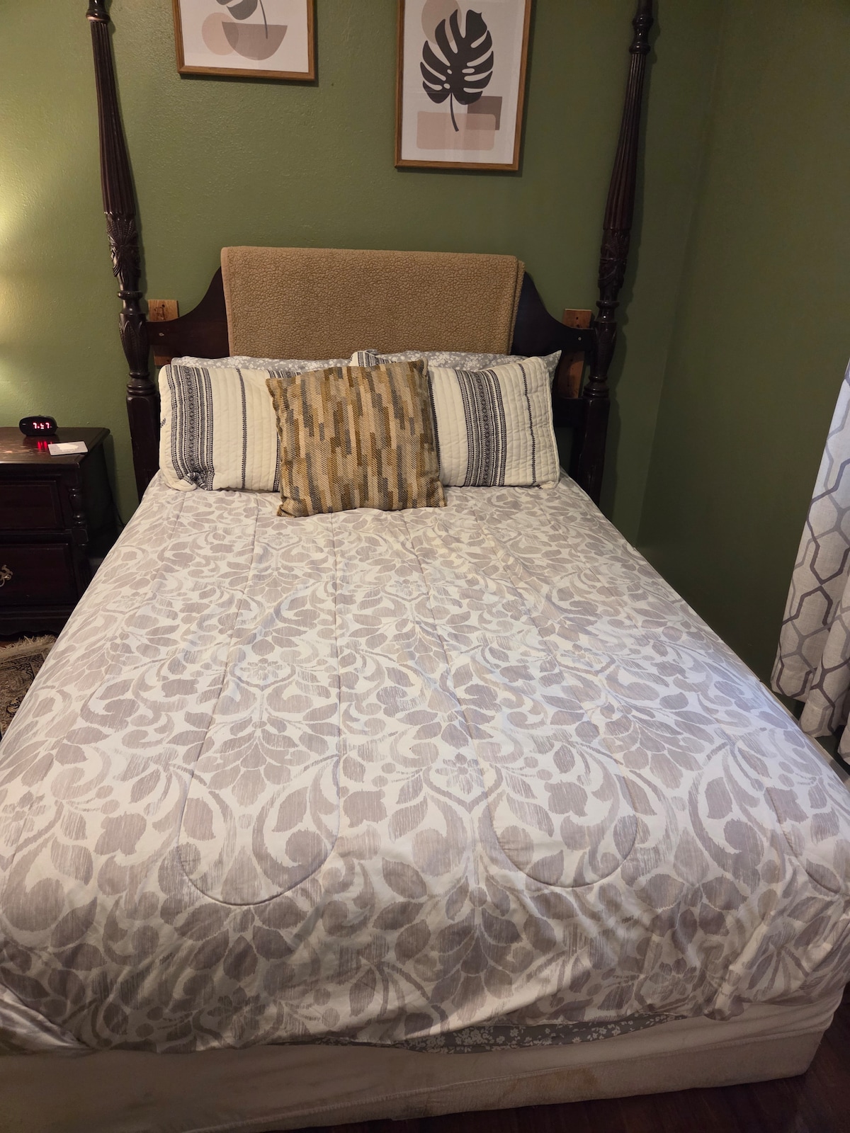 Cómoda habitación privada con cama queen y baño privado en el pasillo