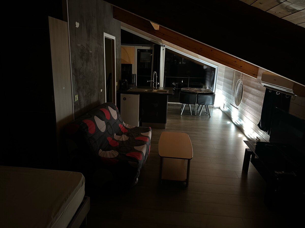 Ubicado en el corazón de un entorno tranquilo y verde, nuestro estudio ofrece una escapada ideal para las personas que viajan por trabajo o de vacaciones. Encontrará una cama cómoda, una cocina americana y un baño. Además, hay conexión wifi disponible para estar conectado en todo momento. El campo de los alrededores ofrece un entorno ideal para relajarse y recargar las pilas.