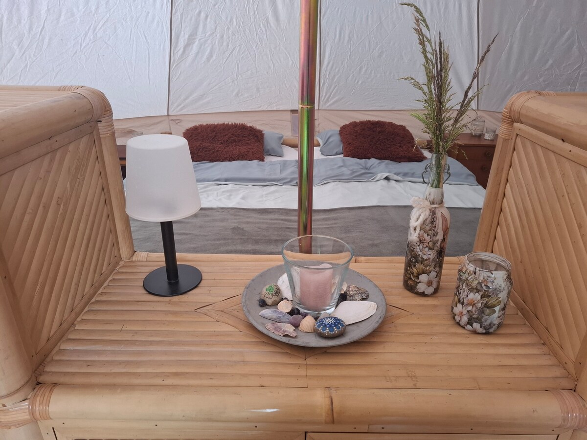 Experimenta acampar con confort y estilo en nuestras acogedoras y modernas carpas redondas amuebladas. Ofrecen una acogedora noche de alojamiento para 2 personas cada uno en una cama doble o 2 camas individuales. Personas: 2 Equipamiento: cama de matrimonio o camas individuales, electricidad, mini-nevera, ventilador Por favor, trae las tuyas: toallas, accesorios de camping Ropa de cama se puede alquilar por € 5,00 por persona.