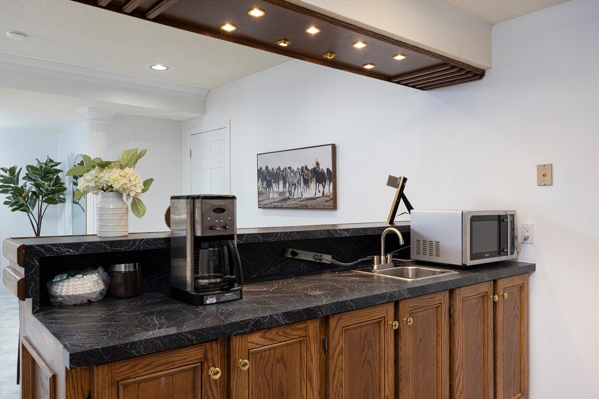 «Suite Escape» ofrece una lujosa suite privada para huéspedes en Pickering, Ontario. Totalmente equipada con una acogedora cama tamaño queen, baño de hidromasaje, estación de trabajo, TV de 65 pulgadas, aire acondicionado, chimenea y cocina americana. Convenientemente ubicado cerca de las autopistas 401 y 407, tren GO, Durham Transit, centros comerciales, cines, casinos, paseos marítimos y rutas de senderismo, campos de golf y bodegas a poca distancia a pie o en coche. El centro de Toronto y el aeropuerto de Pearson están a 30-40 minutos. Sumérgete en el lujo, la tranquilidad y el fácil acceso a lo mejor de Pickering y más allá.