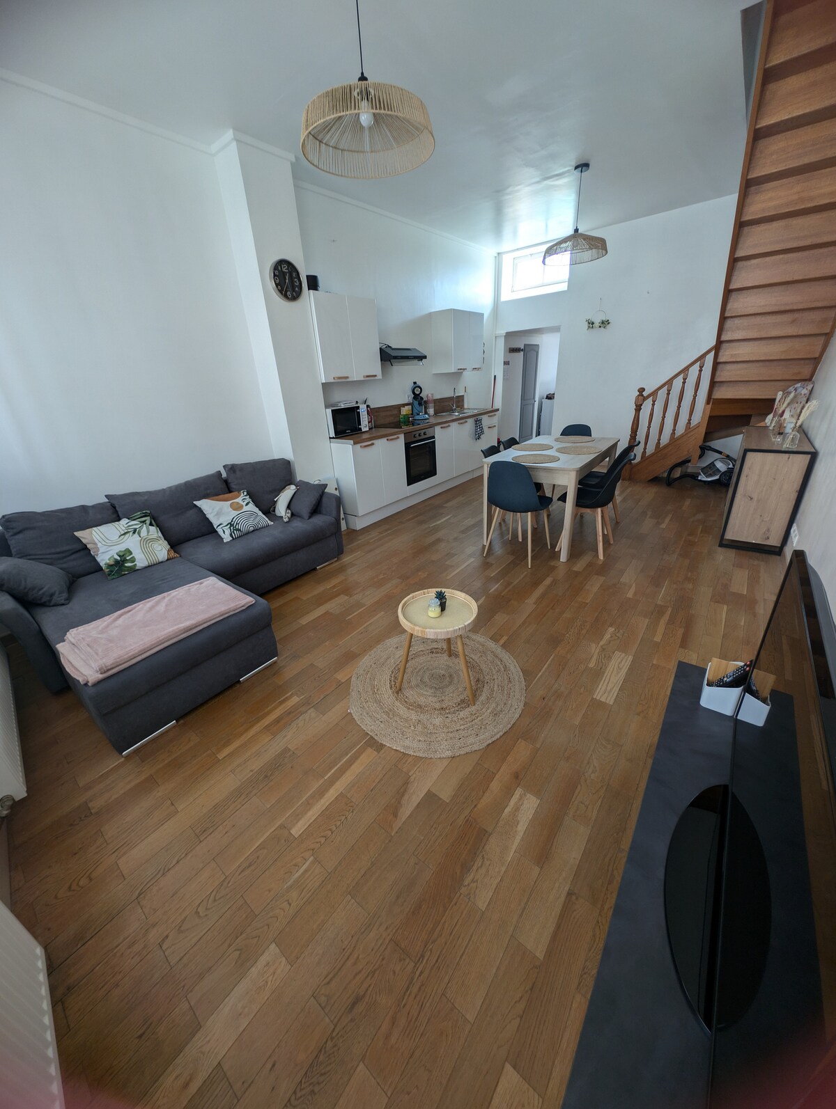 Apartamento dúplex de 60 m2 para 4/6 personas totalmente reformado. Alojamiento situado en el centro de la ciudad en el primer y último piso con terraza, muchas tiendas accesibles a pie (banco, restaurante,floristería,bar...) Estacionamiento gratuito en la calle en la zona azul y también tiene un amplio estacionamiento gratuito justo detrás del alojamiento. Entrada totalmente autónoma gracias a un código. -500 m de la Gran Plaza -700 m de la estación