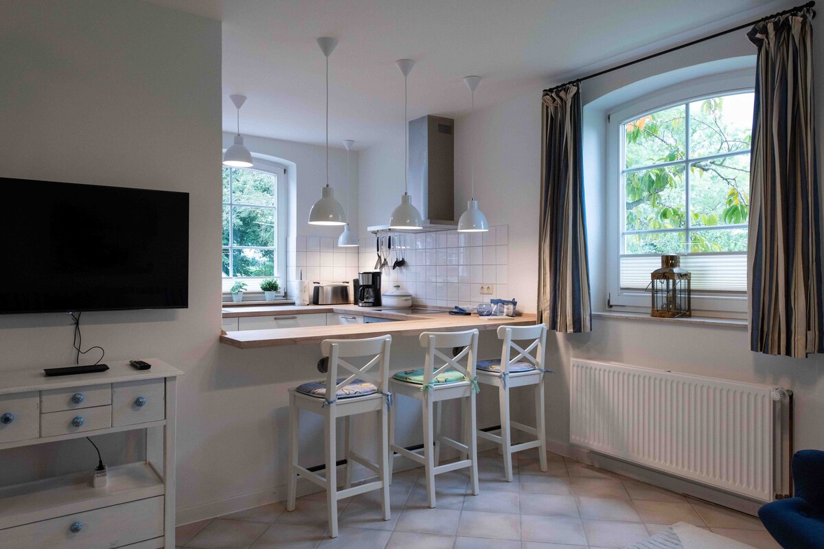Experimenta el encanto de un edificio catalogado de 1859, que se modernizó con mucho amor por los detalles. El apartamento de 36 metros cuadrados en la antigua casa maquinista de las obras de agua ofrece un estilo elegante y una comodidad contemporánea. Ubicación: Ubicado directamente en la playa del Elba, los alrededores te invitan a dar paseos y paseos en bicicleta. La proximidad a la costa de Falkensteiner permite el acceso directo al Elba y ofrece una magnífica vista de los barcos que pasan.