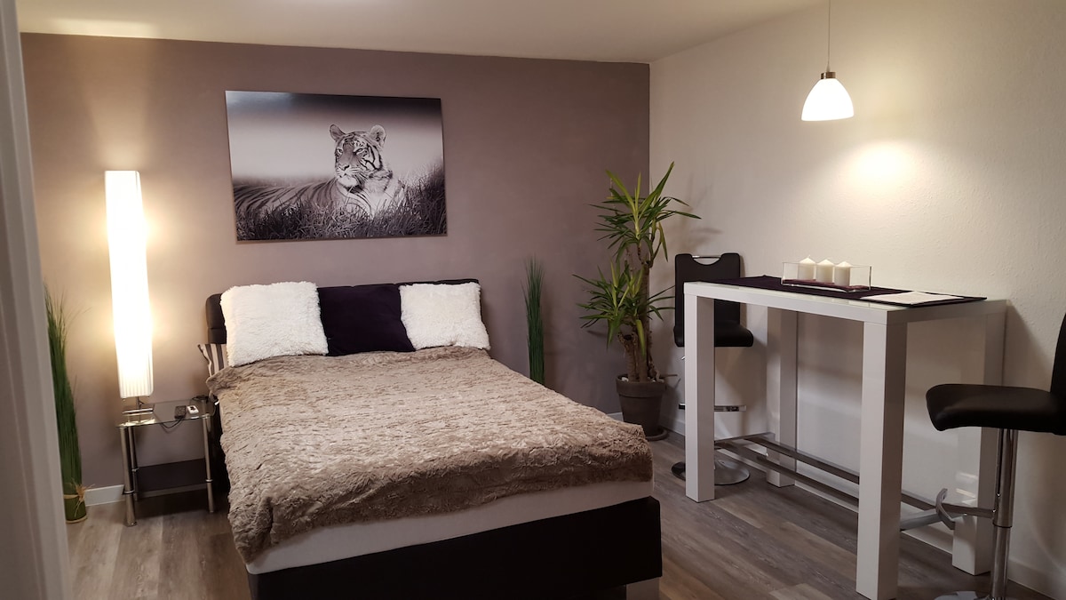 ¡Te damos la bienvenida a tu elegante retiro de 20 metros cuadrados! Disfruta de calefacción por suelo radiante, televisor inteligente, wifi y un pequeño balcón, ideal para fumadores (solo en el exterior). Tu entrada privada garantiza la independencia. Hay estacionamiento gratuito disponible, cargo eléctrico de pago. La conexión directa de autobús a Outlet City Metzingen hace que las compras sean particularmente convenientes. Además, el aeropuerto de Stuttgart está a solo 20 minutos, ¡perfecto para viajes cortos o de negocios!