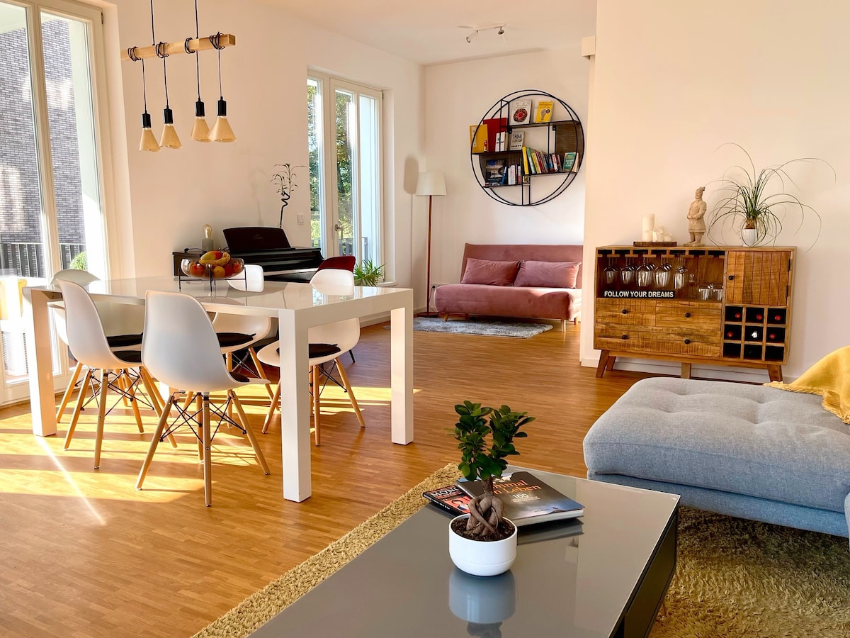 Le damos una cálida bienvenida a nuestro apartamento (casa de dos familias) en Hoppegarten cerca de Berlín, que es muy moderno, elegante, acogedor y decorado con mucho amor y atención al detalle. Para sus vacaciones relajantes o estancias de negocios, tiene a su disposición 100 metros cuadrados de uso exclusivo. El apartamento se encuentra a solo 2-3 minutos a pie de la línea de tren S 5, así como de REWE y DM. Está en la ciudad en 25 minutos, sin cambios. El S-Bahn funciona 24/7.