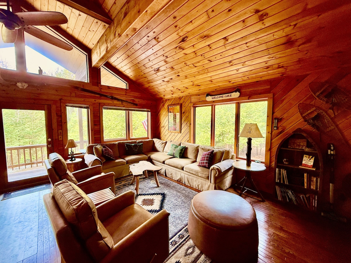 ¡Te damos la bienvenida a Jackson's Lodge! ¿Buscas una escapada a Adirondack para tu familia y amigos en cualquier temporada? Ubicada en un parque privado de 4 acres en el sureste de las ADK, esta acogedora cabaña moderna de mediados de siglo te mostrará cómo es la vida en el norte del estado de Nueva York. Después de explorar lo mejor que las ADK tienen para ofrecer, ven a sumergirte en el jacuzzi, relájate en el porche de cedro o acércate a la chimenea de piedra natural. ¡Asa algunos 'smores, contempla el cielo nocturno y deja que tu estrés se desvanezca!
