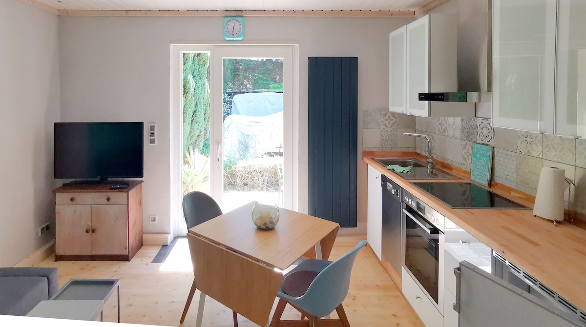 Welcome to our newly renovated apartment on an idyllic four-sided farm! The cozy accommodation offers space for 2 people and has a private entrance. Located directly by the beautiful Hardter Forest, the surroundings invite you to take walks and visit cafés. Excellent connections: A52 nearby, bus stop at the door. Fontys University, Mönchengladbach University, the Dutch border, and Düsseldorf are easily reachable. Relaxation and mobility – perfectly combined!