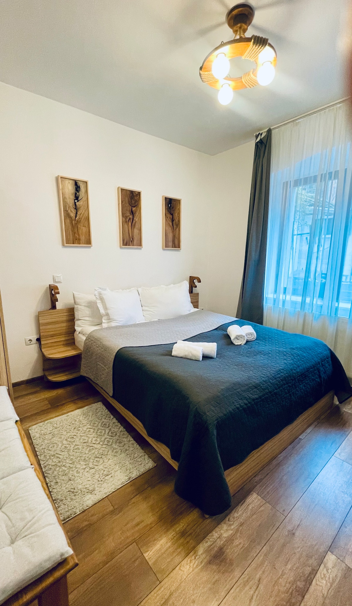 Nuestro departamento está a pocos pasos de Piata Mare (Grand Square) en Sibiu. Ubicado en un edificio histórico de 200 años de antigüedad, cuenta con un acogedor dormitorio, sala de estar con TV inteligente (Netflix), wifi rápido y cocina totalmente equipada con cafetera, estufa y lavadora. La calefacción central mantiene las cosas calientes en invierno y el aire acondicionado está disponible durante el verano. Una pequeña terraza privada agrega encanto adicional, perfecta para relajarse después de un día explorando la ciudad.